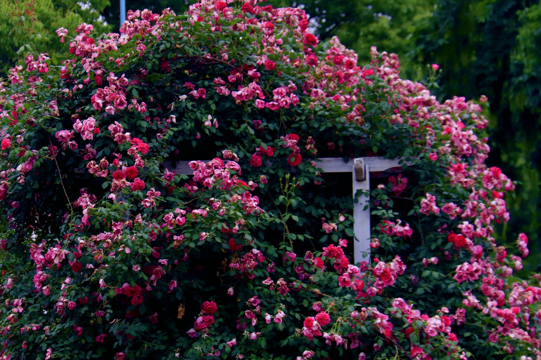 百花園中的薔薇爬滿花架 郭劼攝
