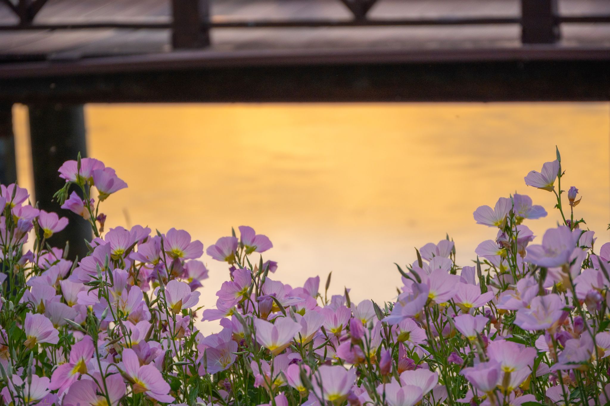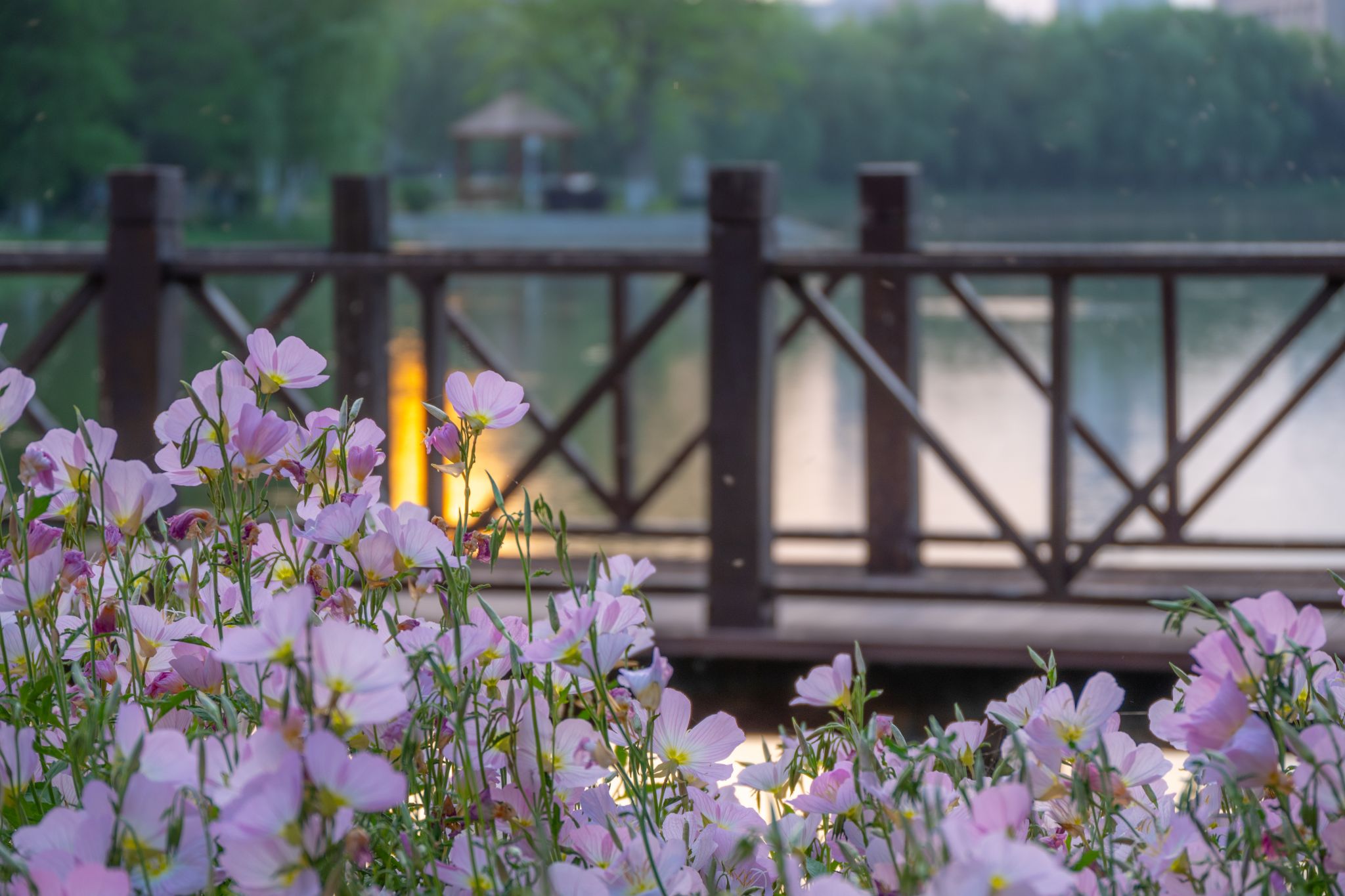 沁湖邊的美麗月見草與沁湖橋 陳楷林?jǐn)z