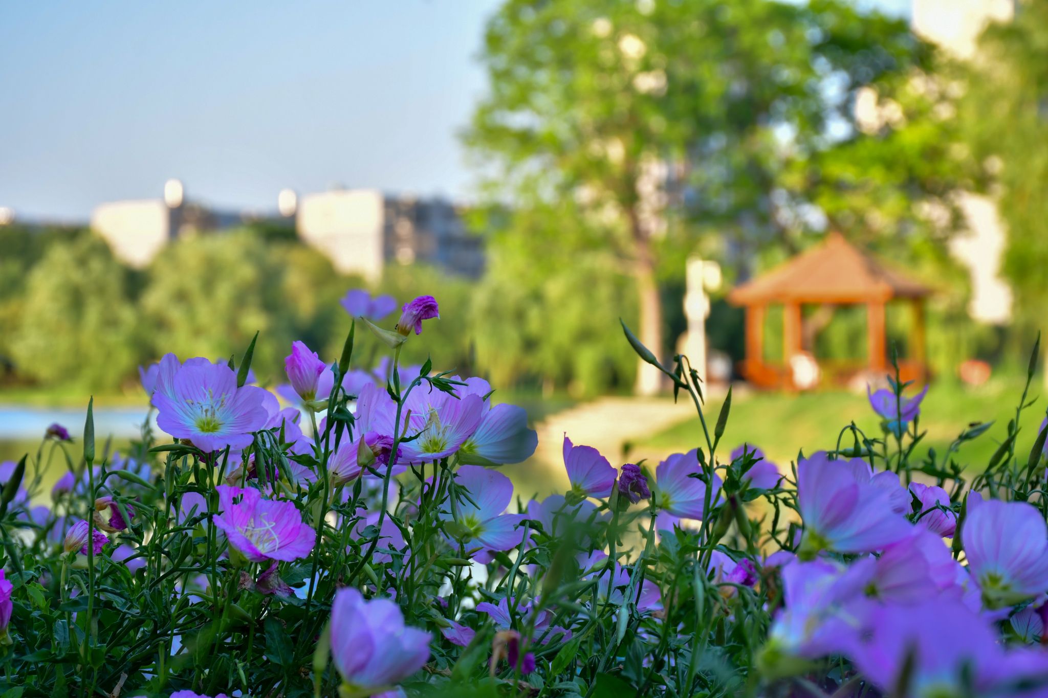 沁湖邊的美麗月見草與小亭子 陳楷林?jǐn)z