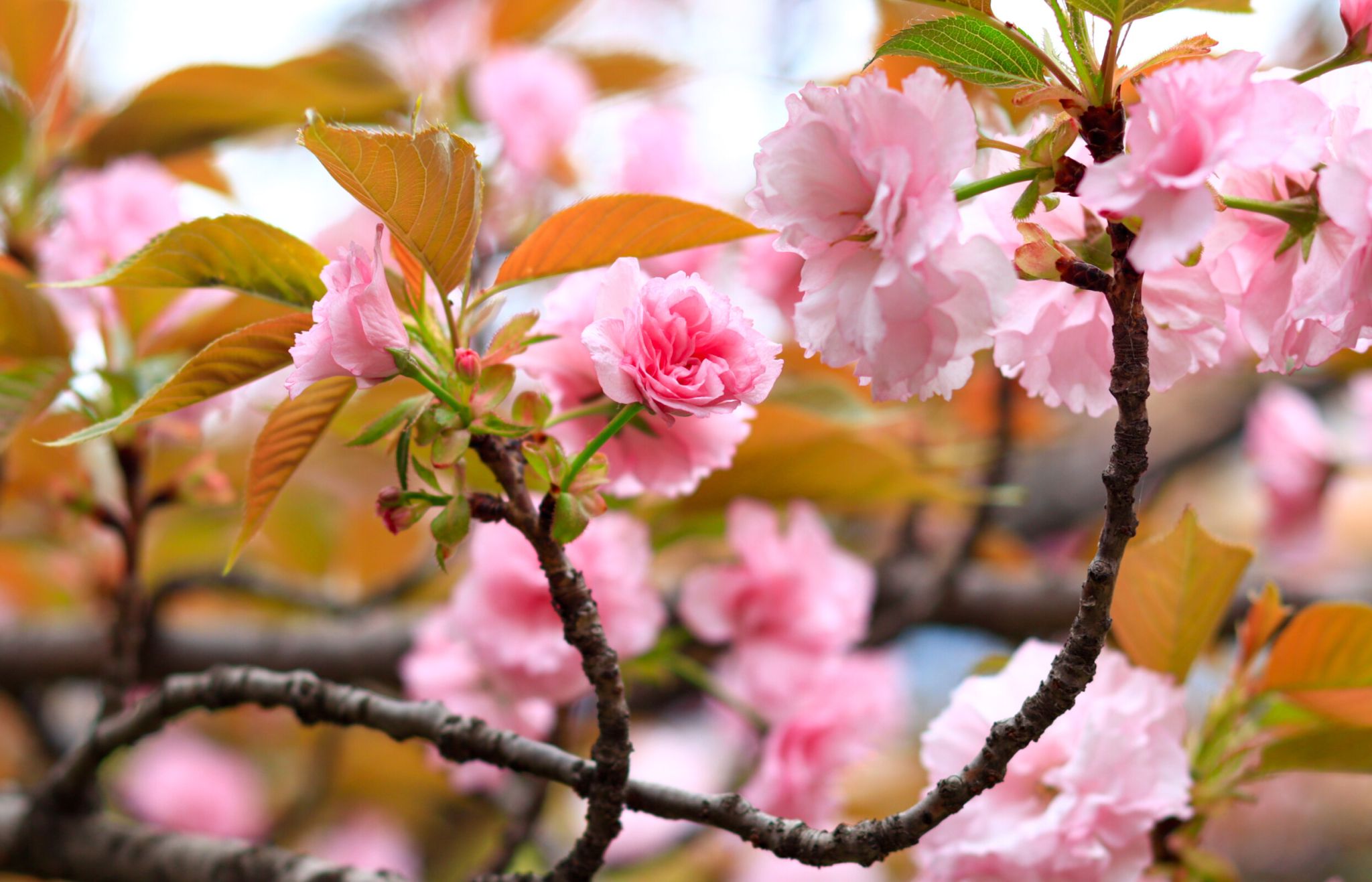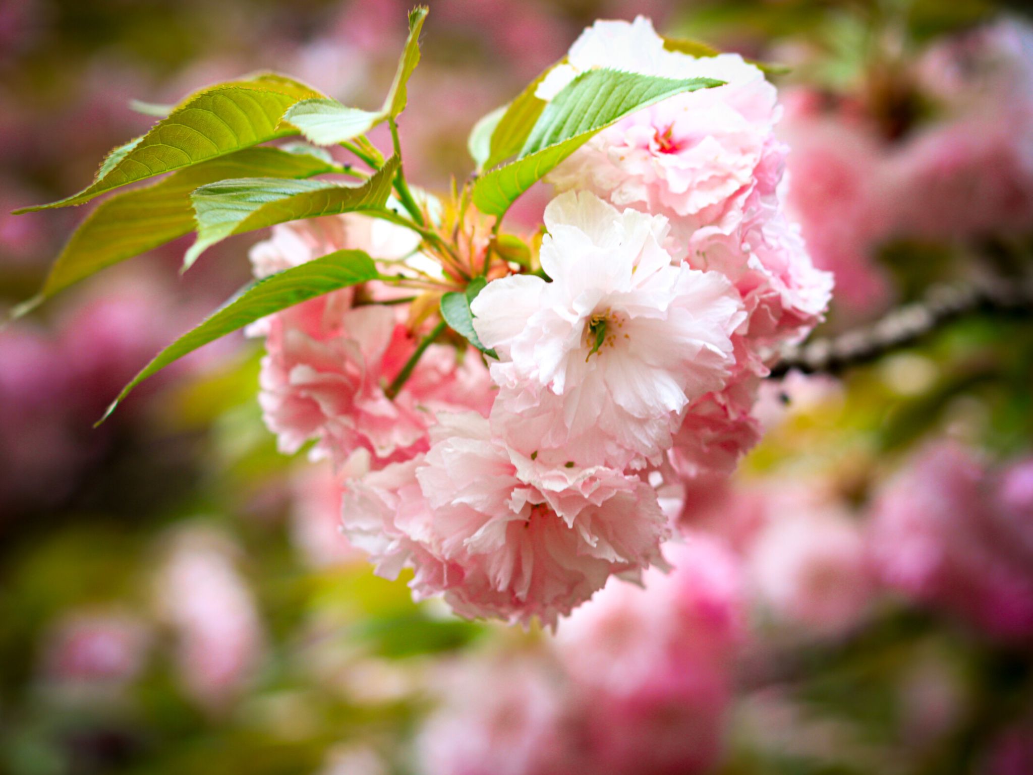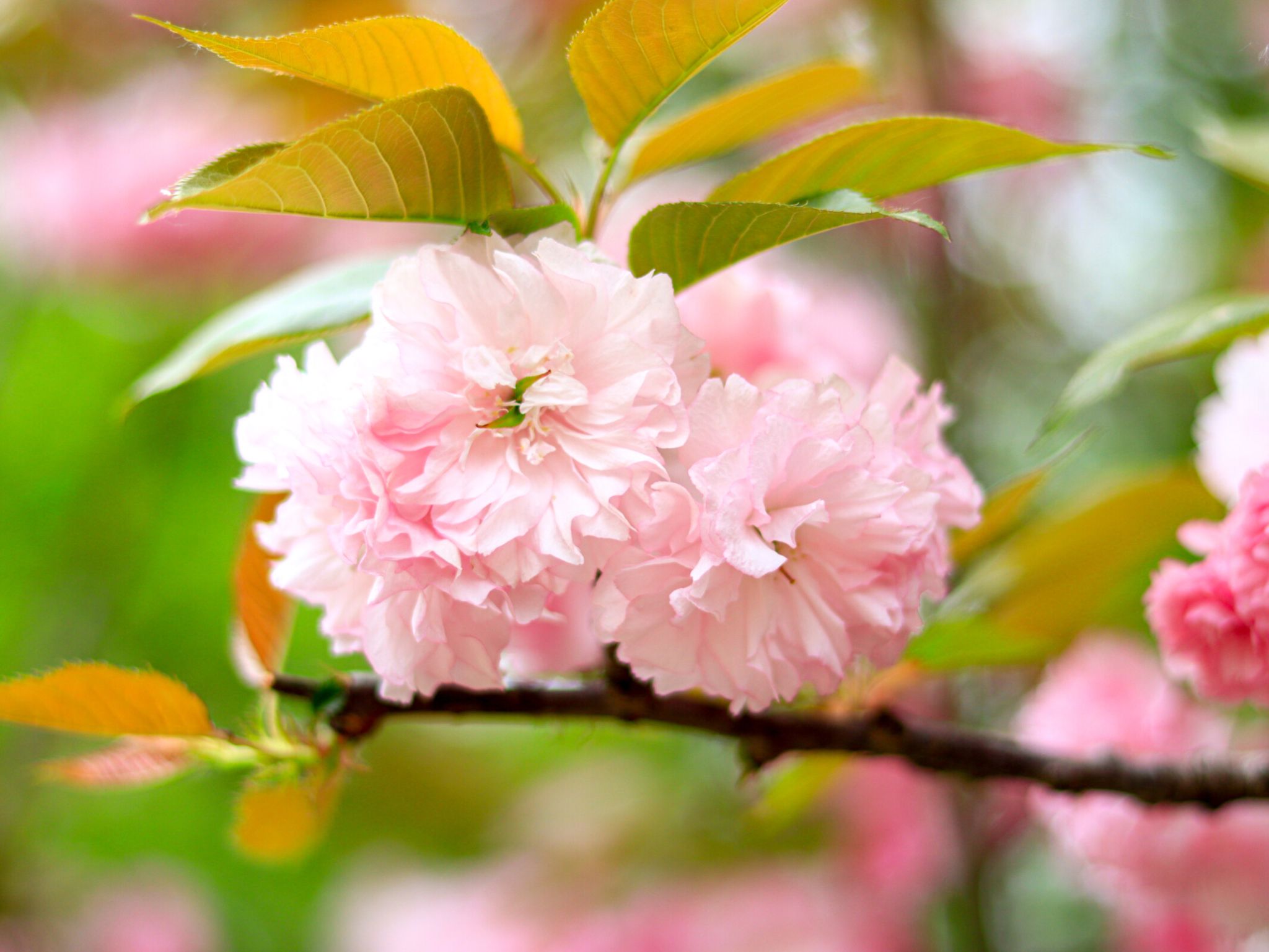 晚櫻屬于薔薇科櫻屬落葉喬木,別名重瓣櫻花,是櫻花家族中花期較晚的品種。其葉片橢圓狀卵形,花朵大而艷麗,花瓣層層疊疊,有粉紅、白色等色,盛開時花團錦簇,如云霞般絢爛。晚櫻喜陽光充足的環(huán)境,耐寒性較強,常作為行道樹或園林景觀樹。晚櫻的花語是 “轉(zhuǎn)瞬即逝的美”,象征著美好的事物雖短暫卻令人難忘。花期在4月左右,我校櫻園、北園研究生宿舍附近可見。