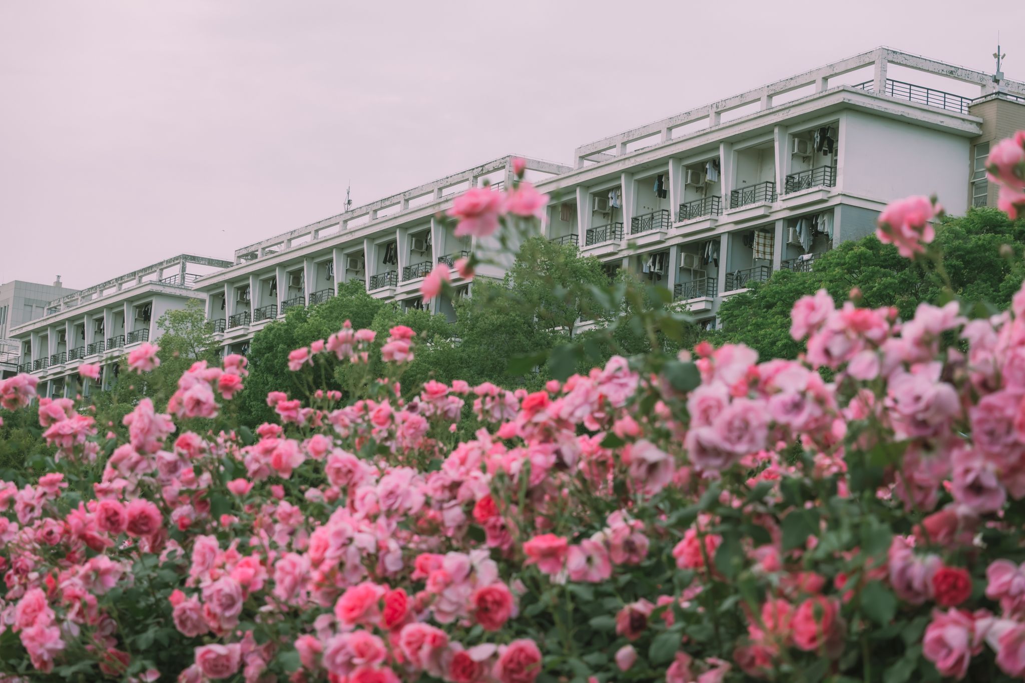 薔薇花與宿舍 楊欣怡攝