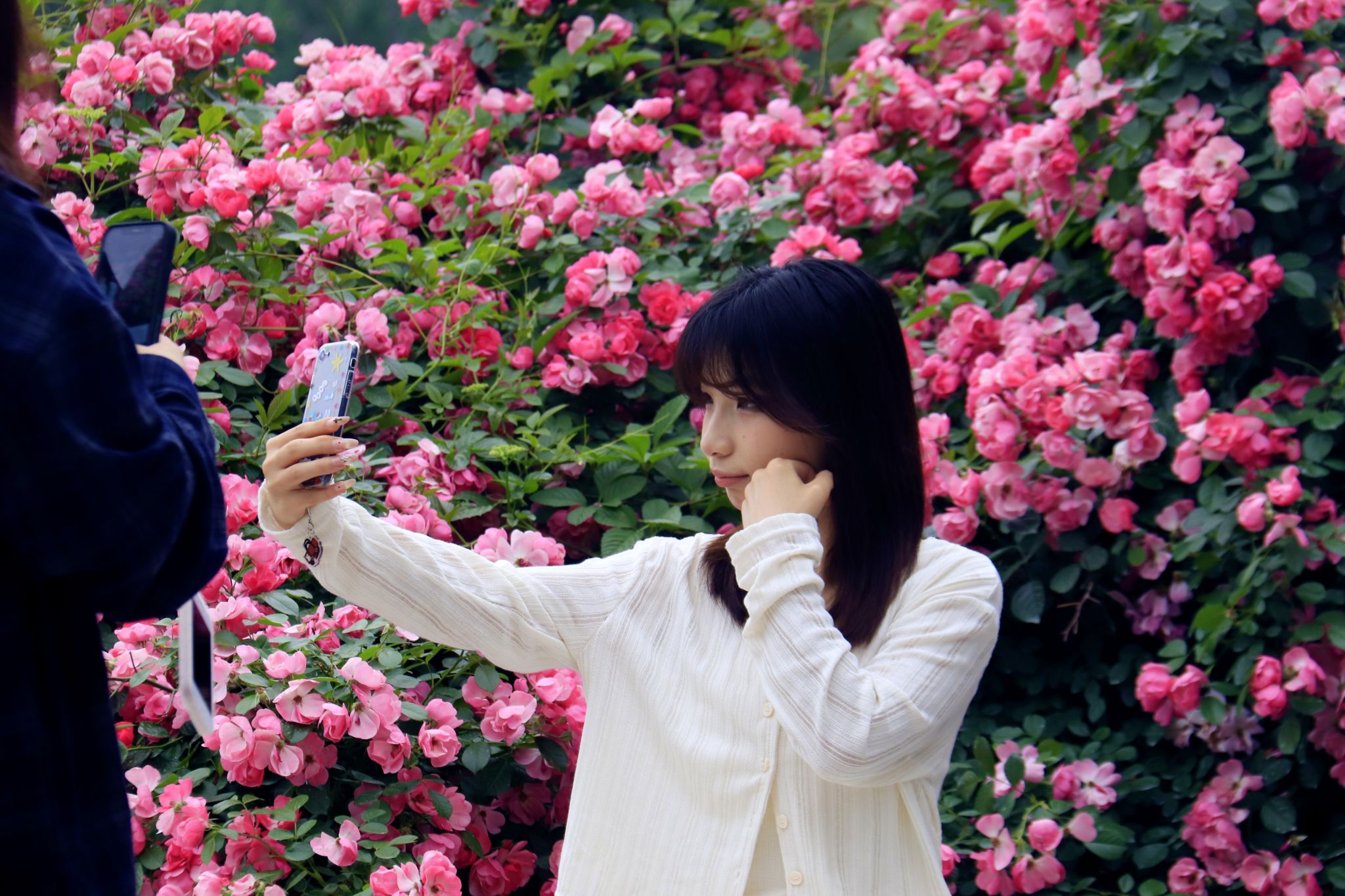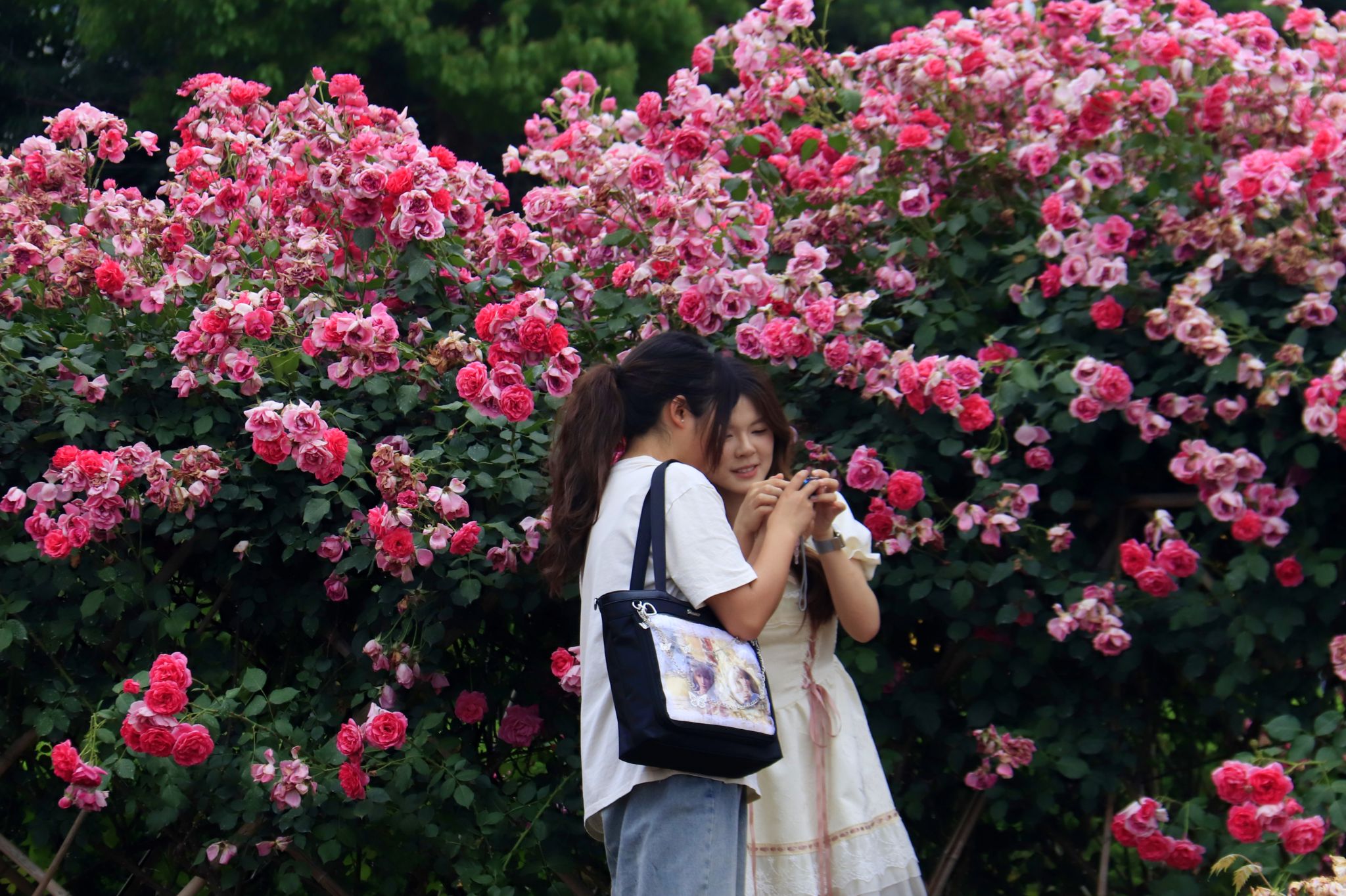 學(xué)生與薔薇合影 郭劼攝
