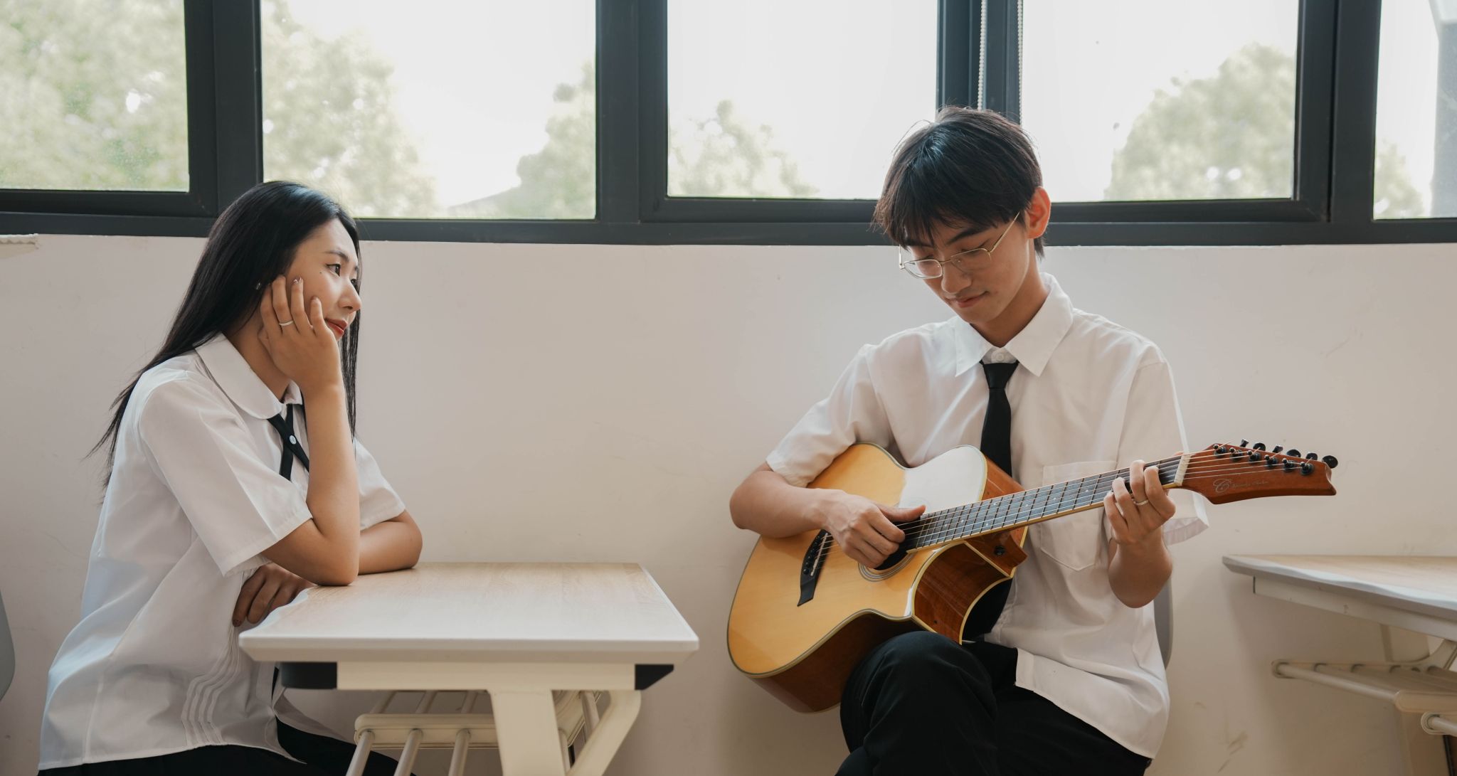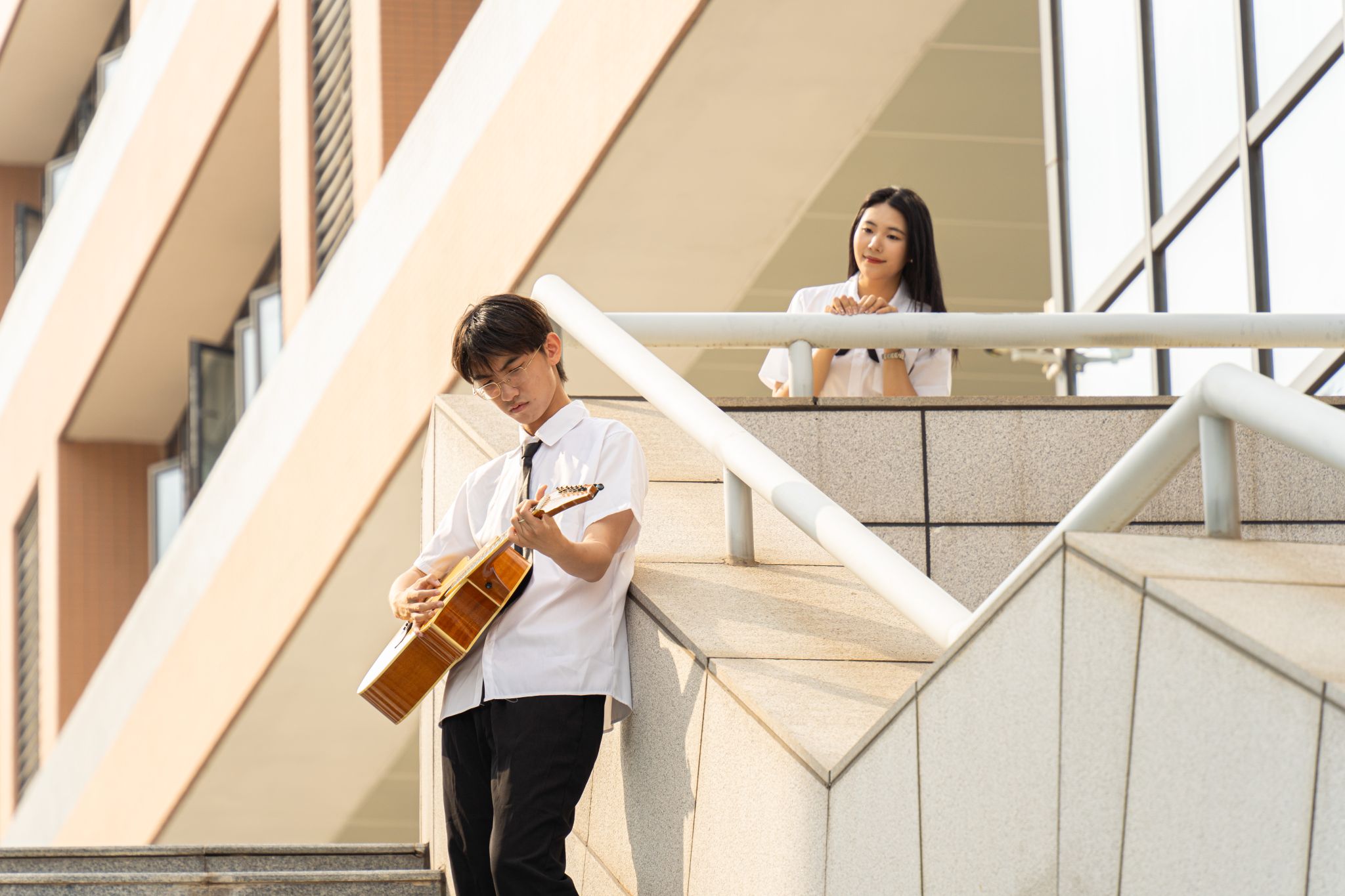 男生彈吉他女生轉(zhuǎn)圈 張貝貝攝