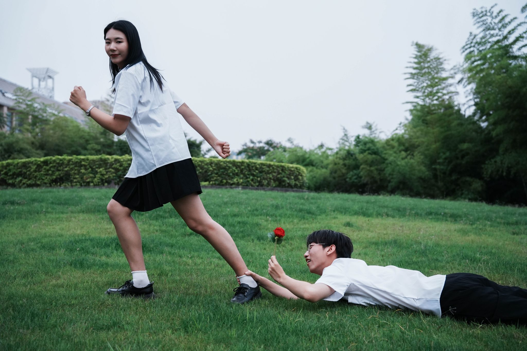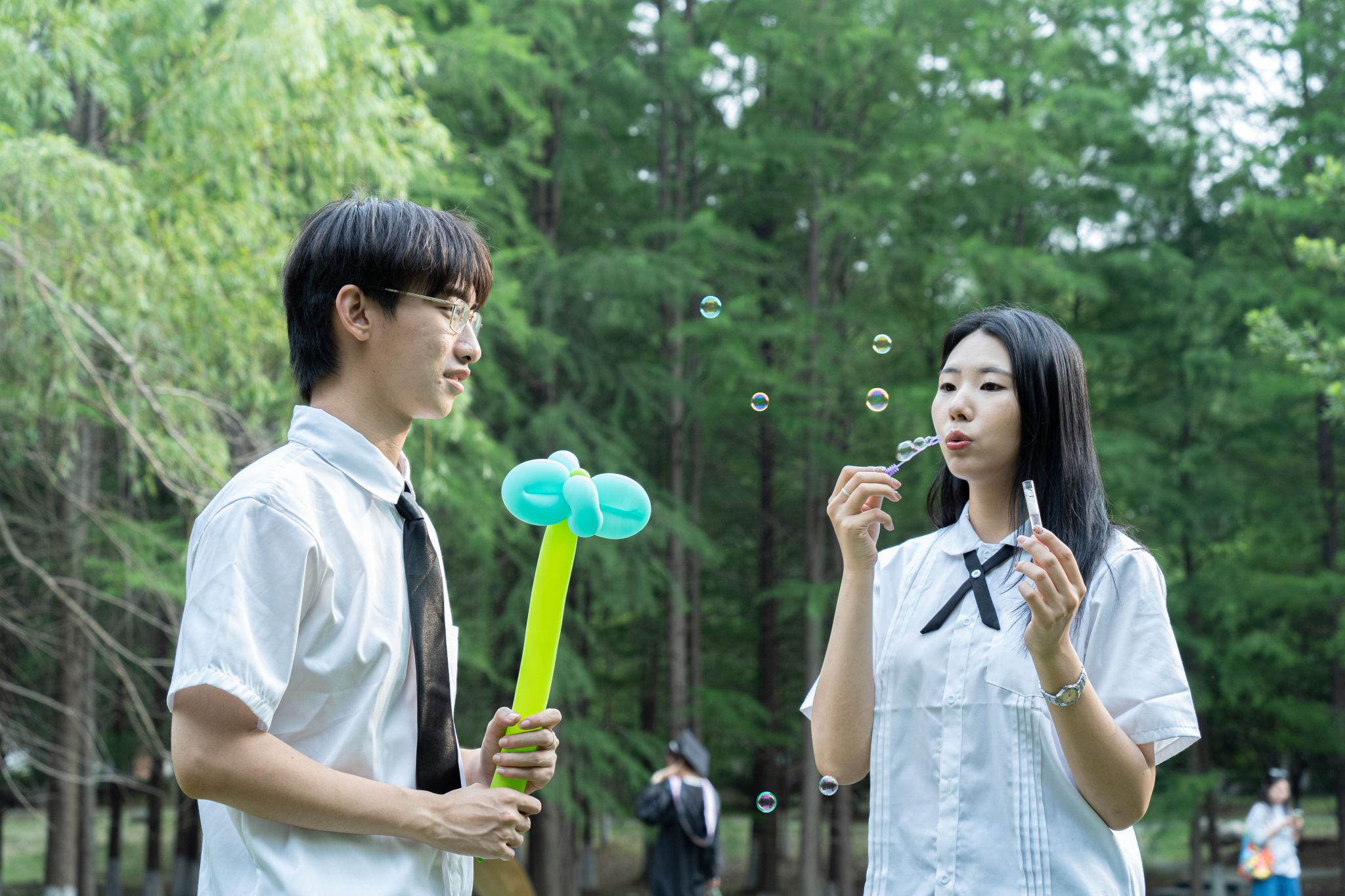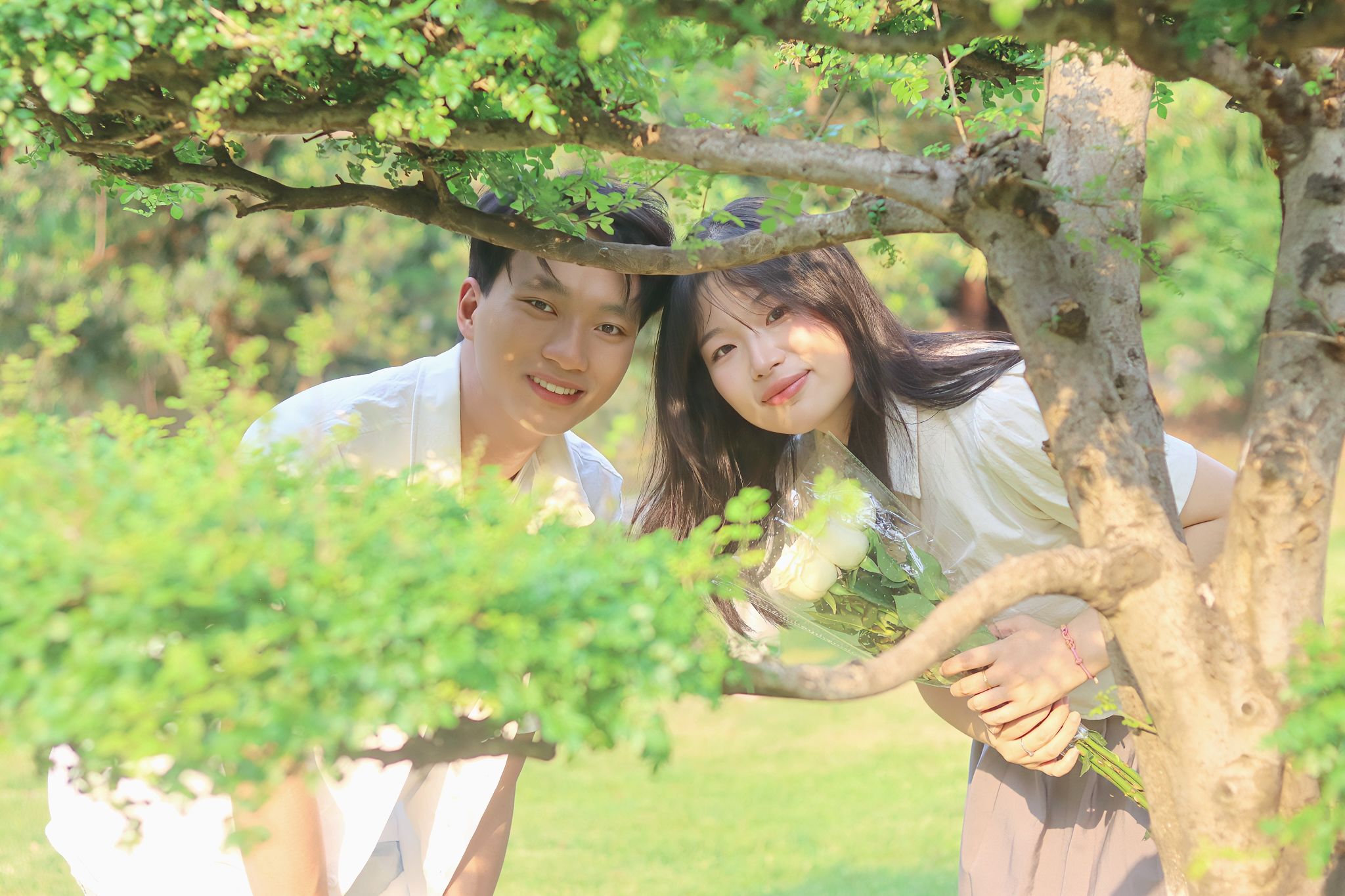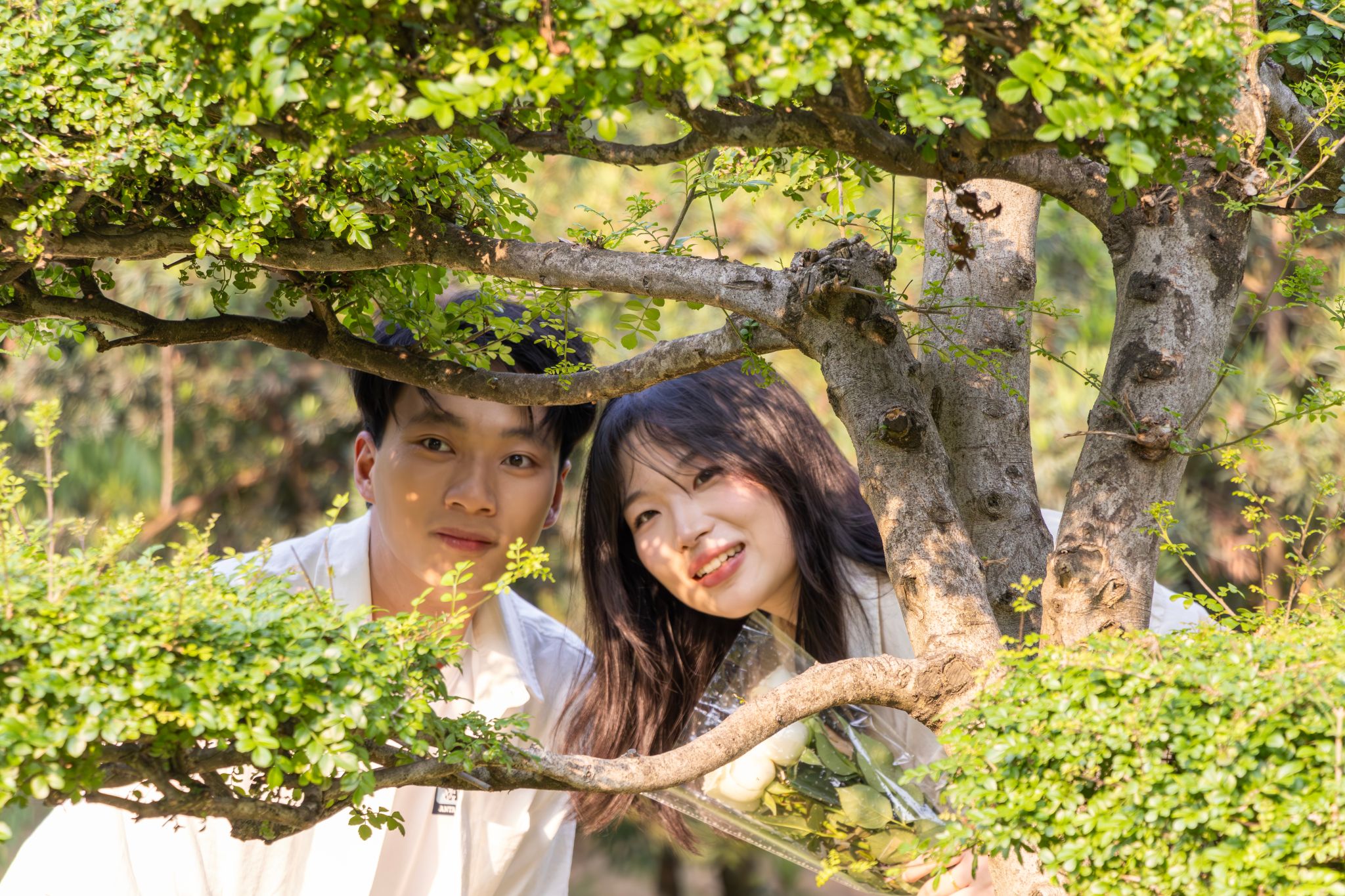 方澤國和他的對(duì)象在草坪合影 唐治海攝