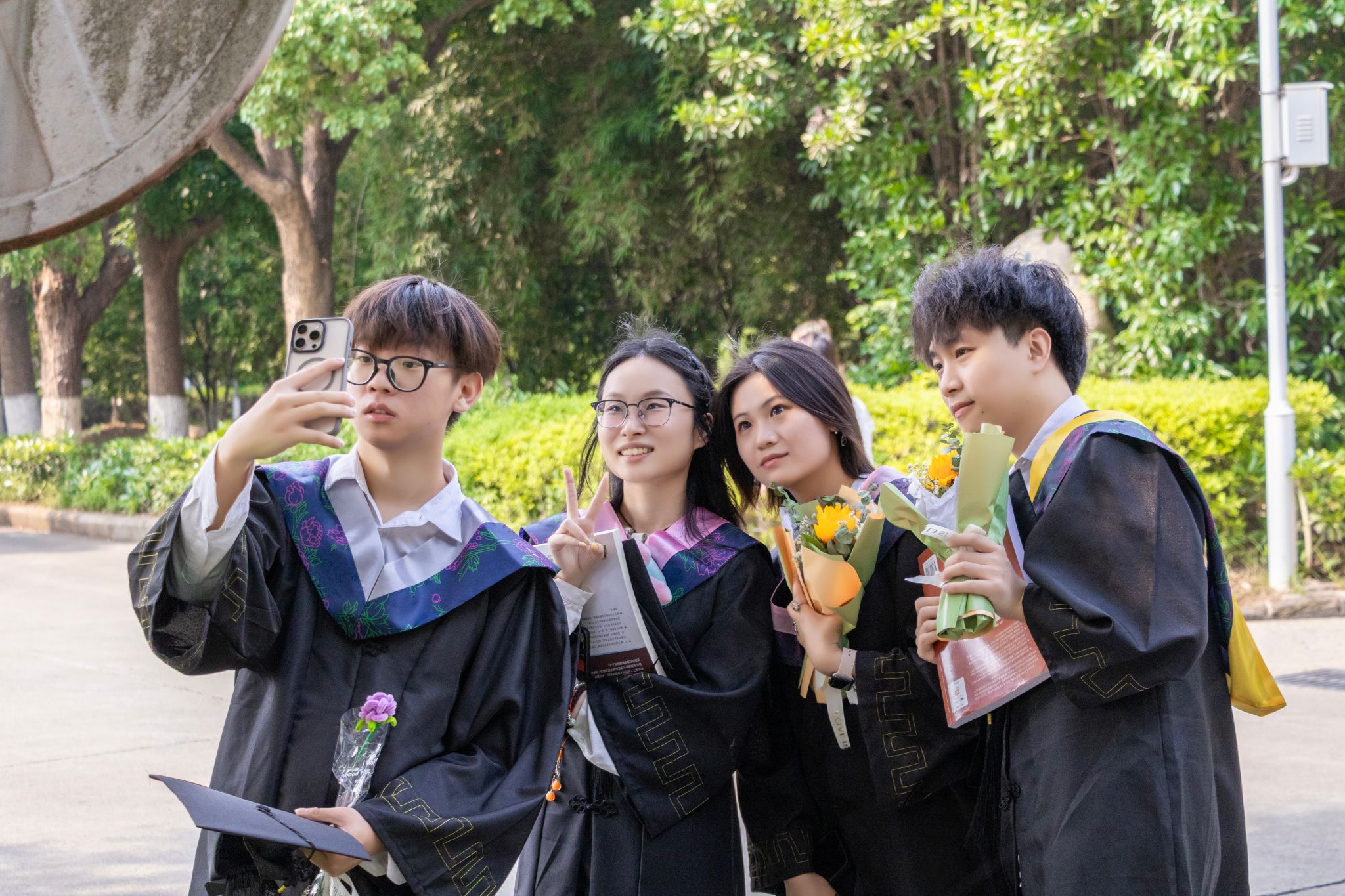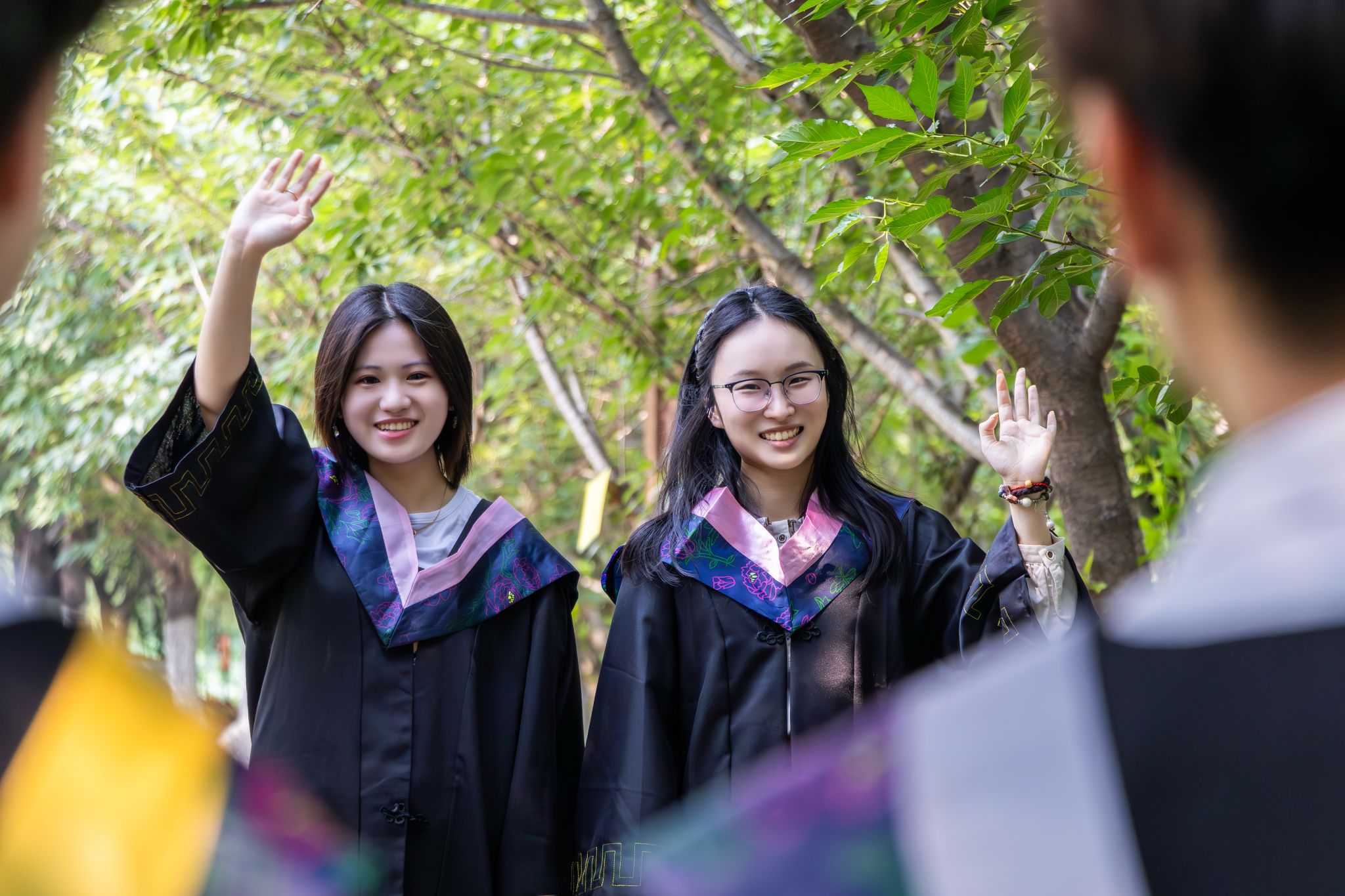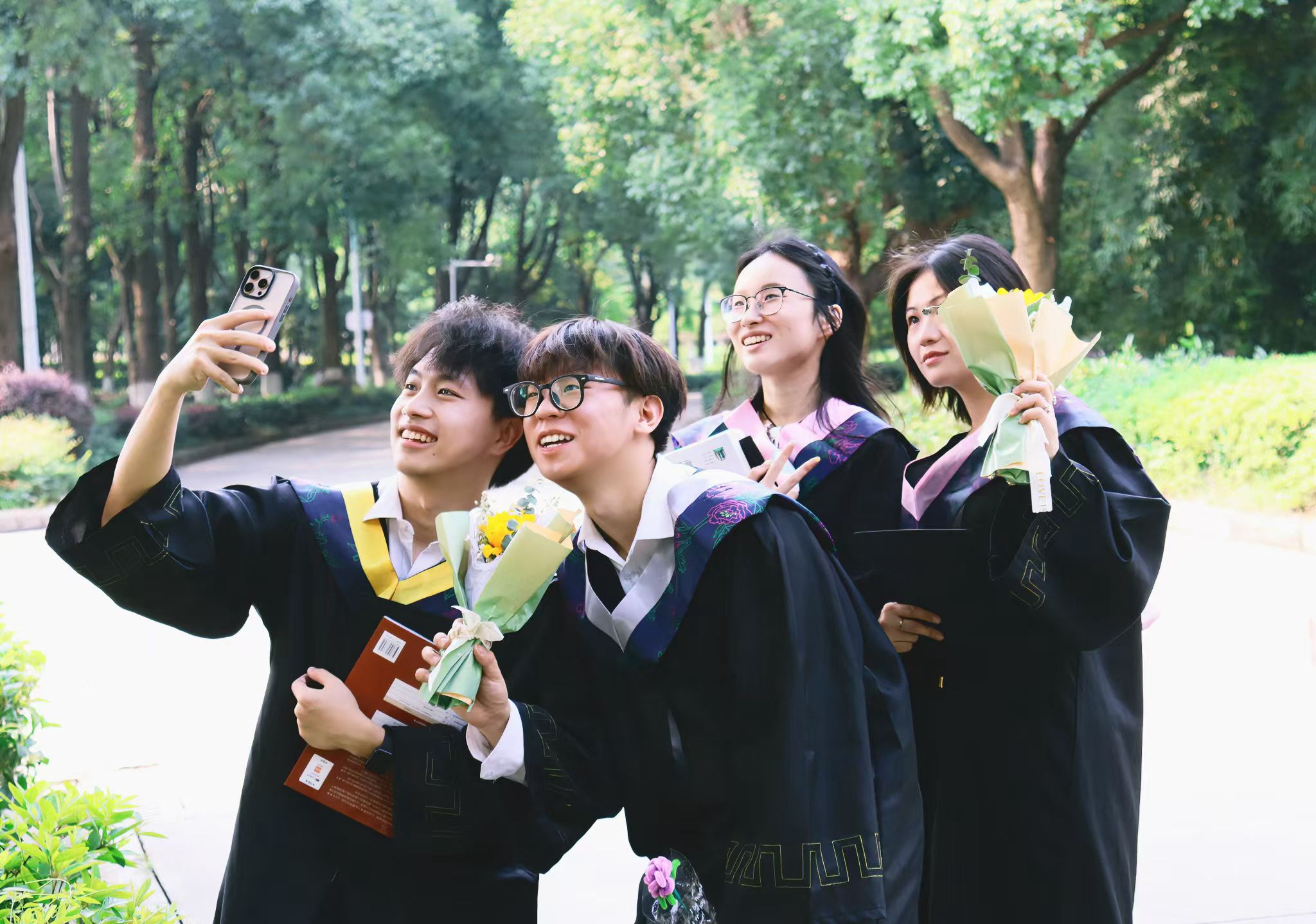 又是一年畢業(yè)季,我校畢業(yè)生們?cè)谛?nèi)合影留念,告別大學(xué)生活,充滿希望地邁向未來。