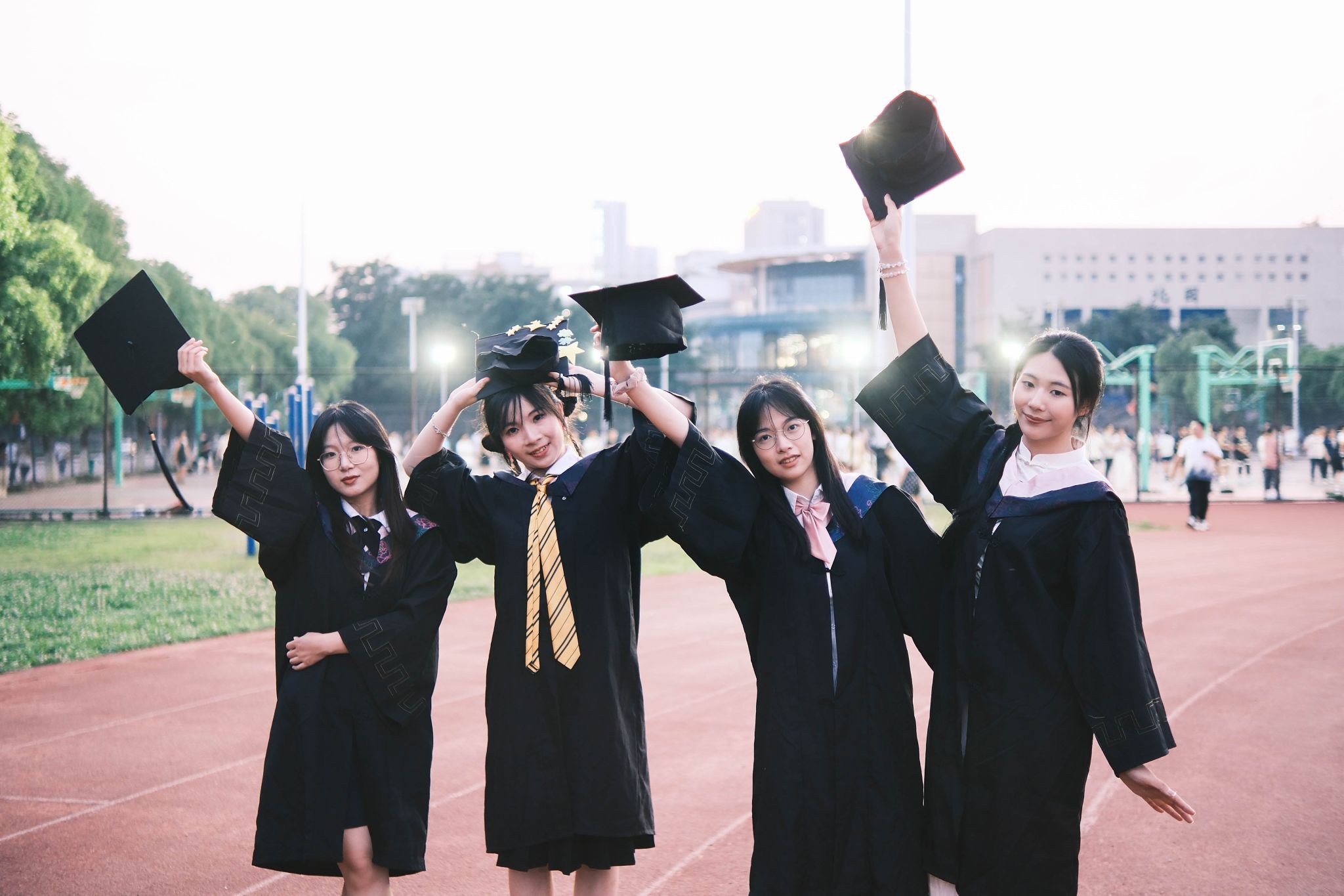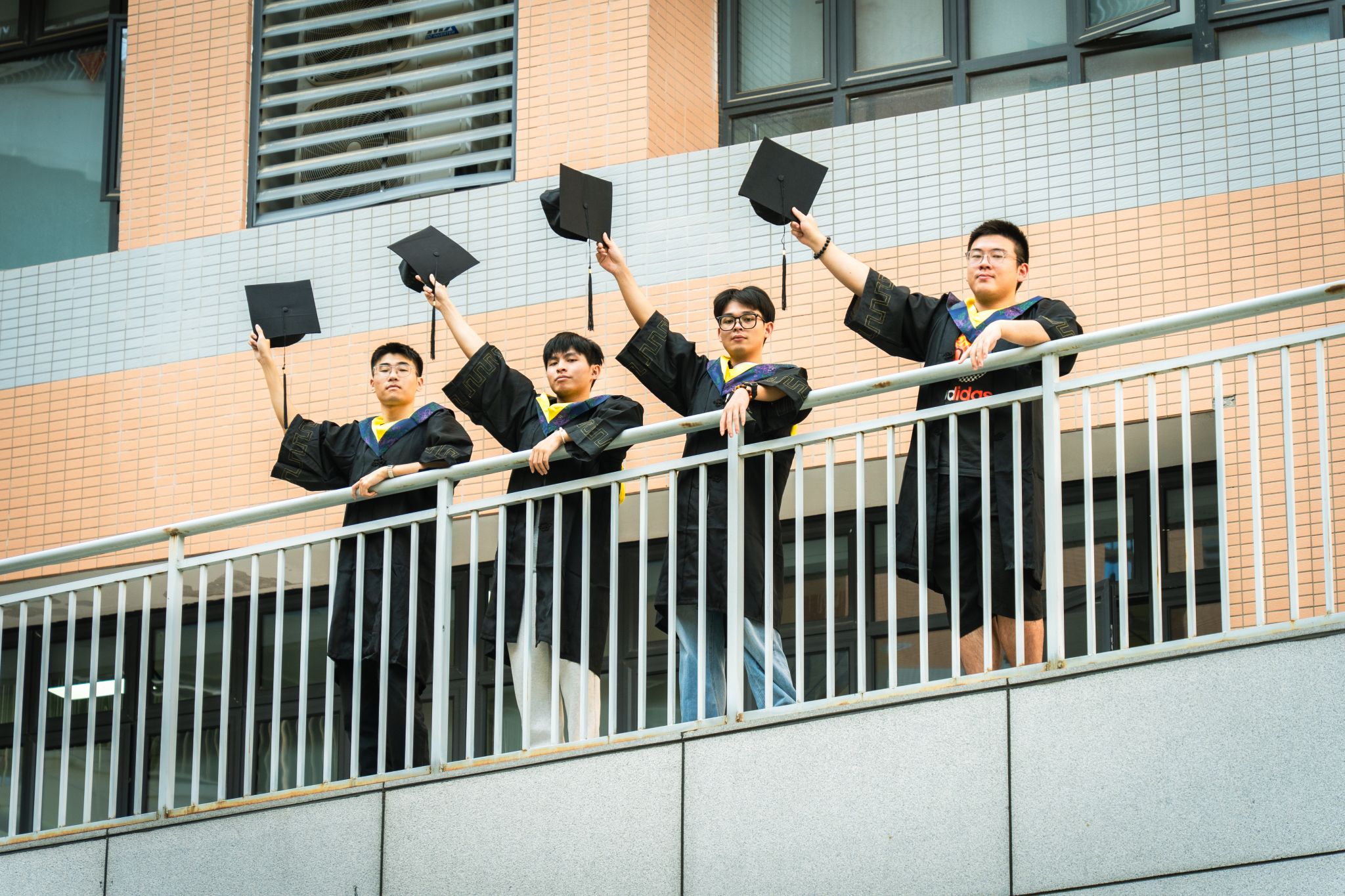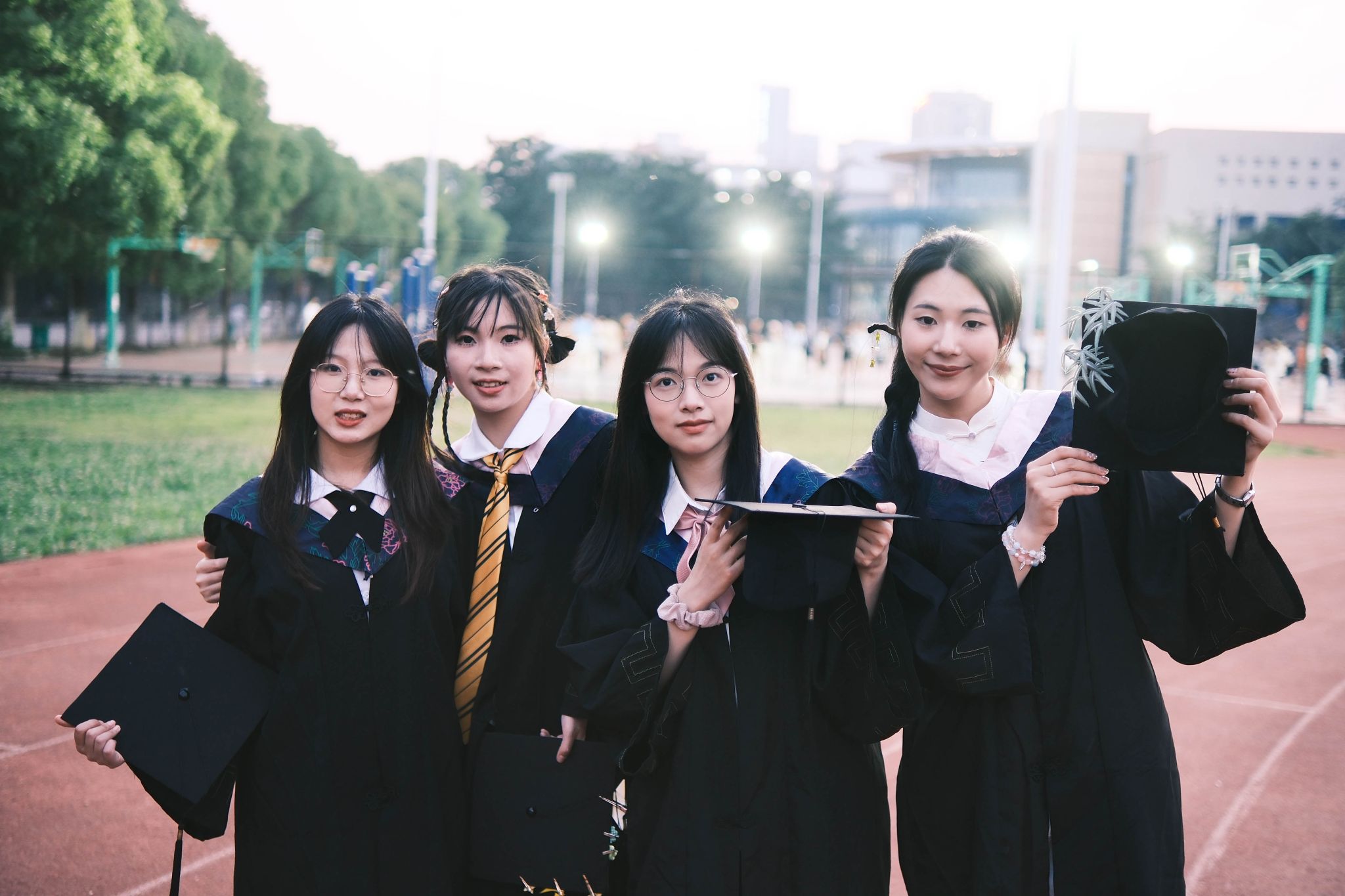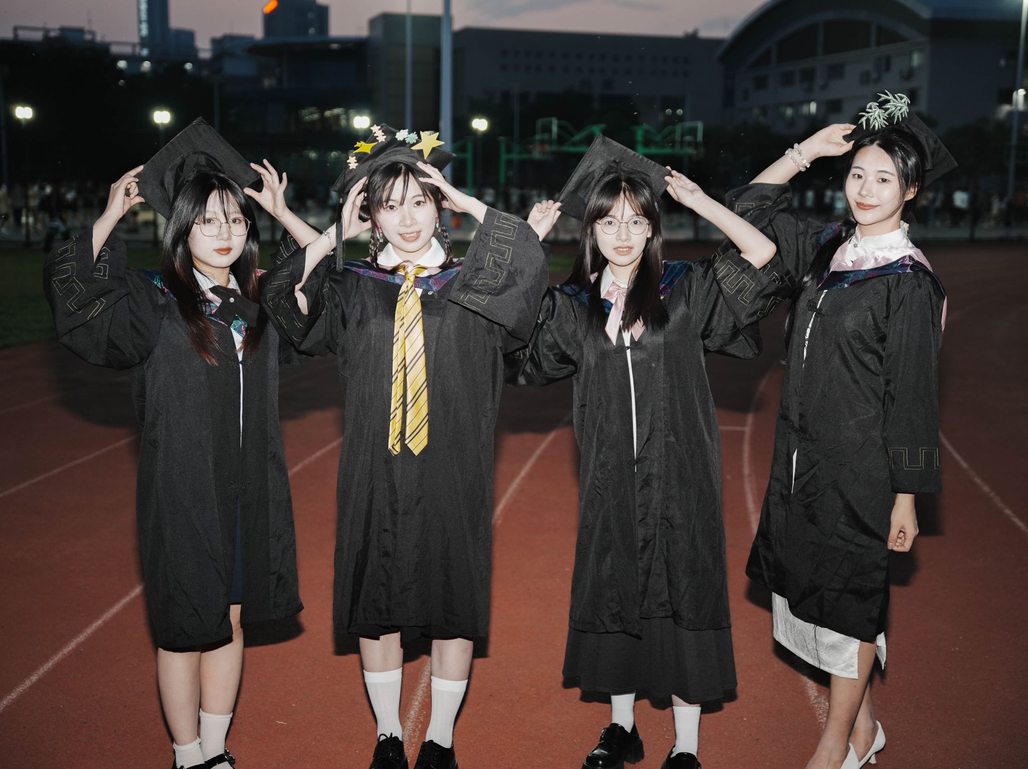 跑道上學(xué)士服合照 中景 陳薏帆攝