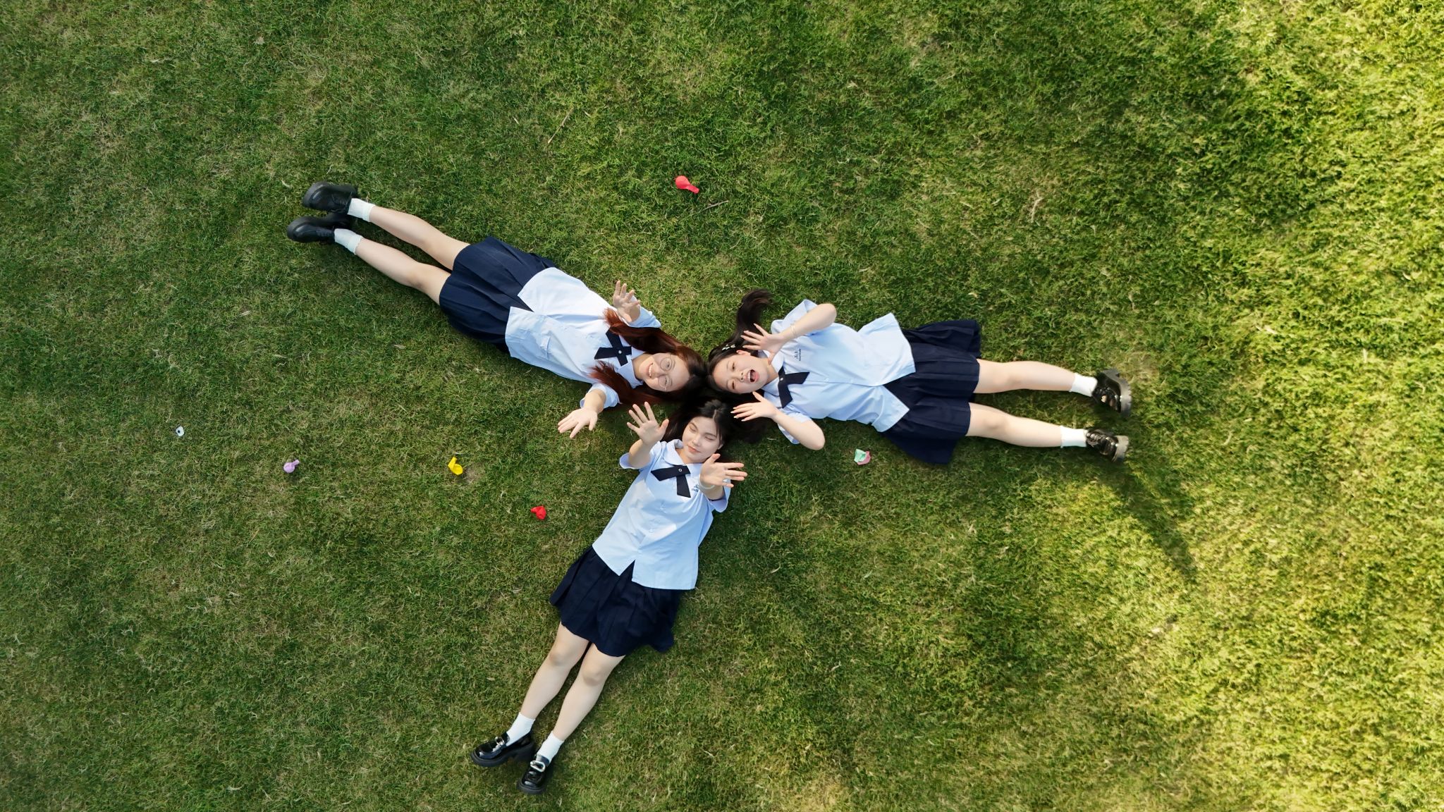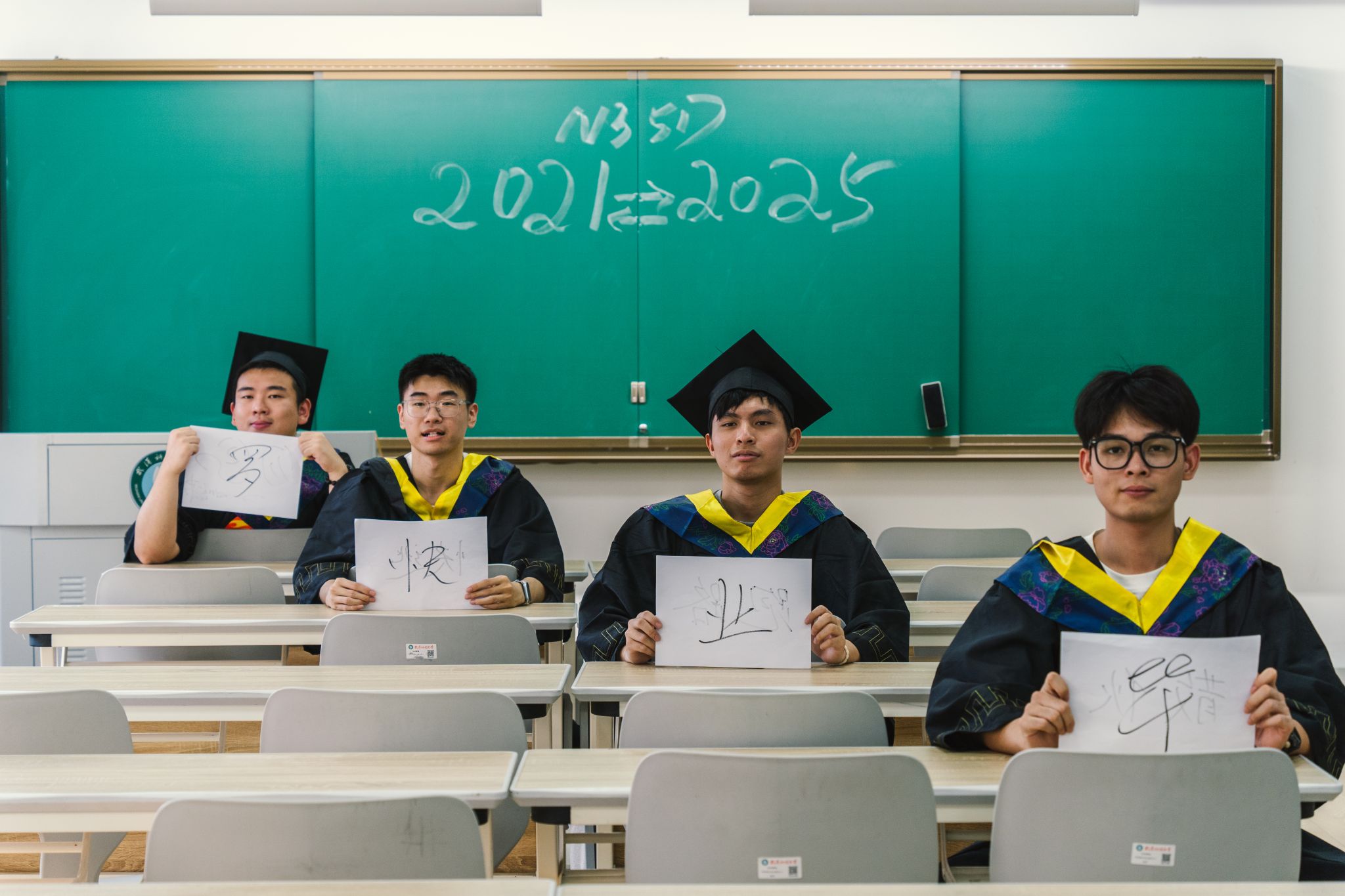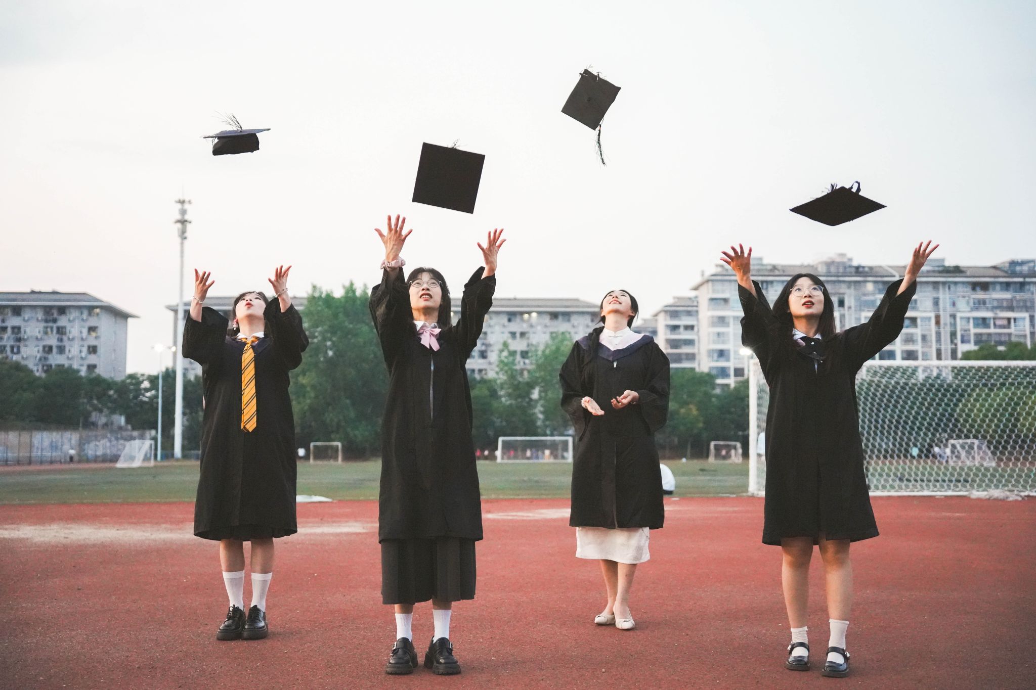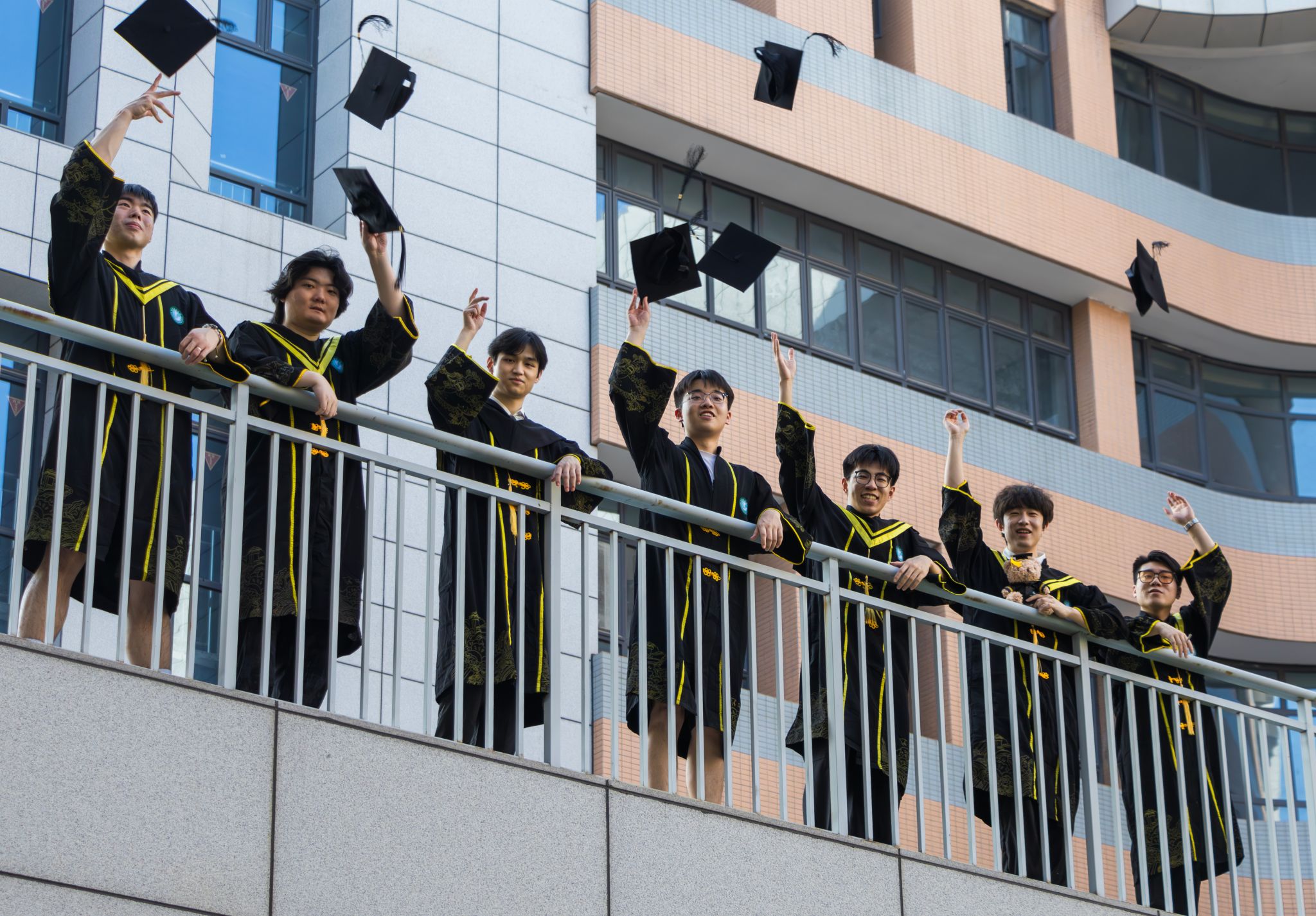 跑道上學(xué)士服合照 中景 陳薏帆攝