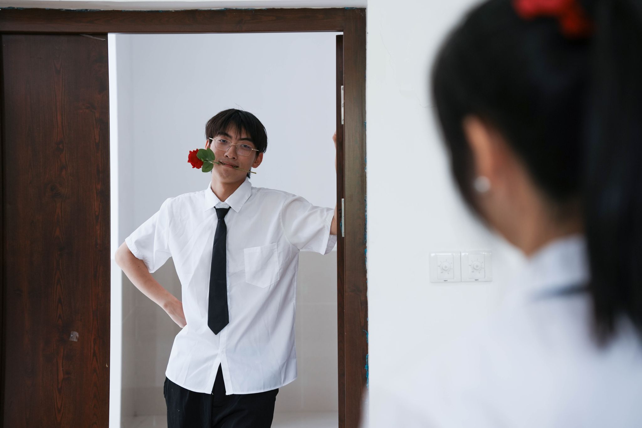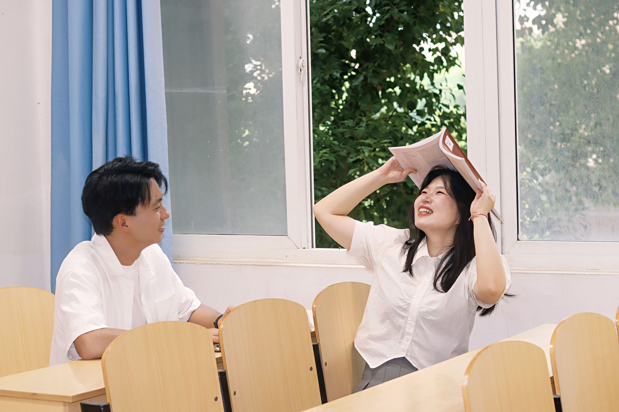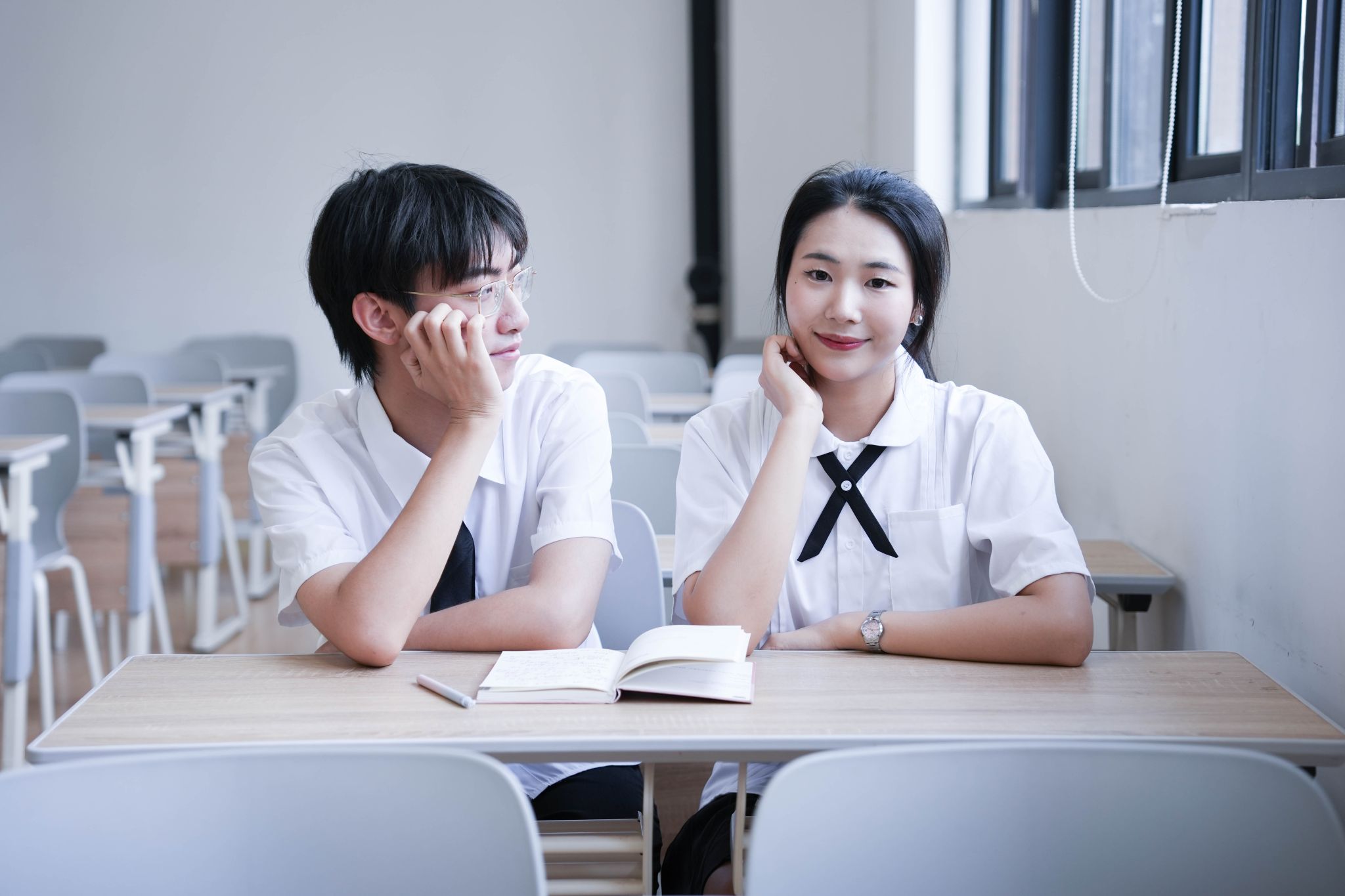 女生偷看正在學(xué)習(xí)的男生 張貝貝攝