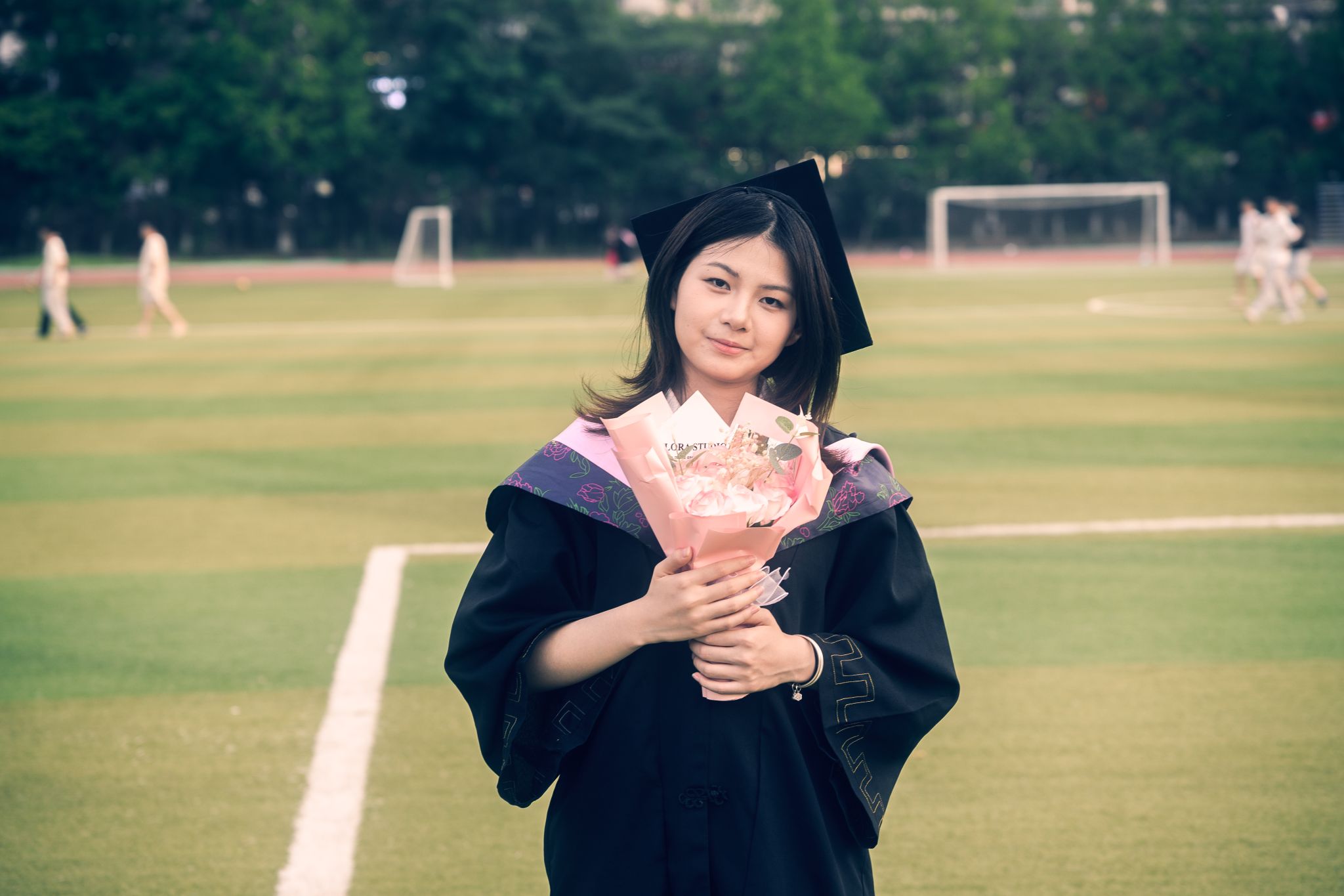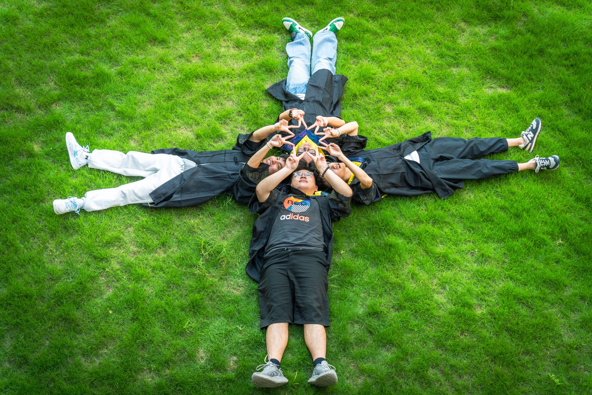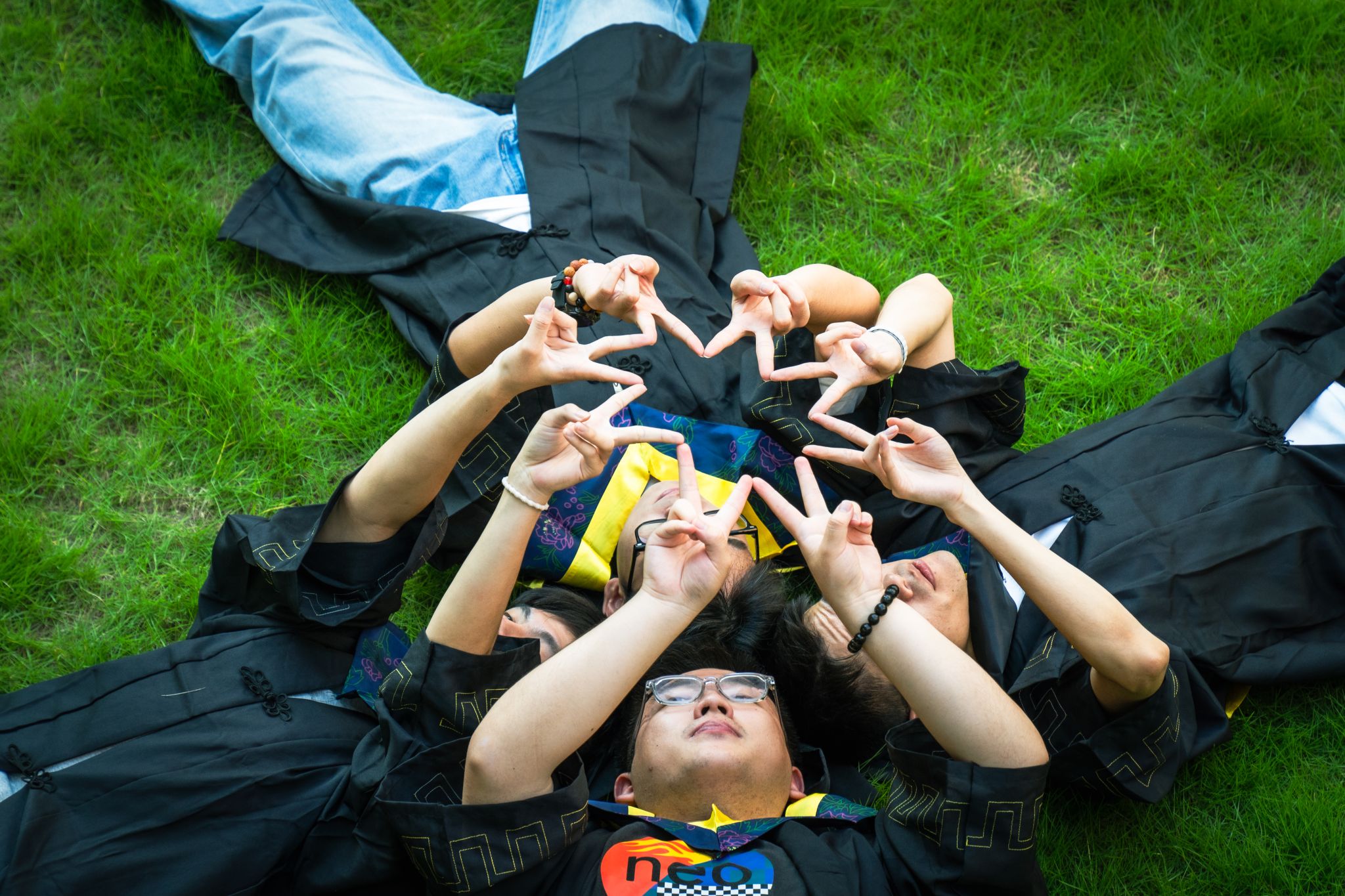 跑道上學(xué)士服合照 近景 陳薏帆攝