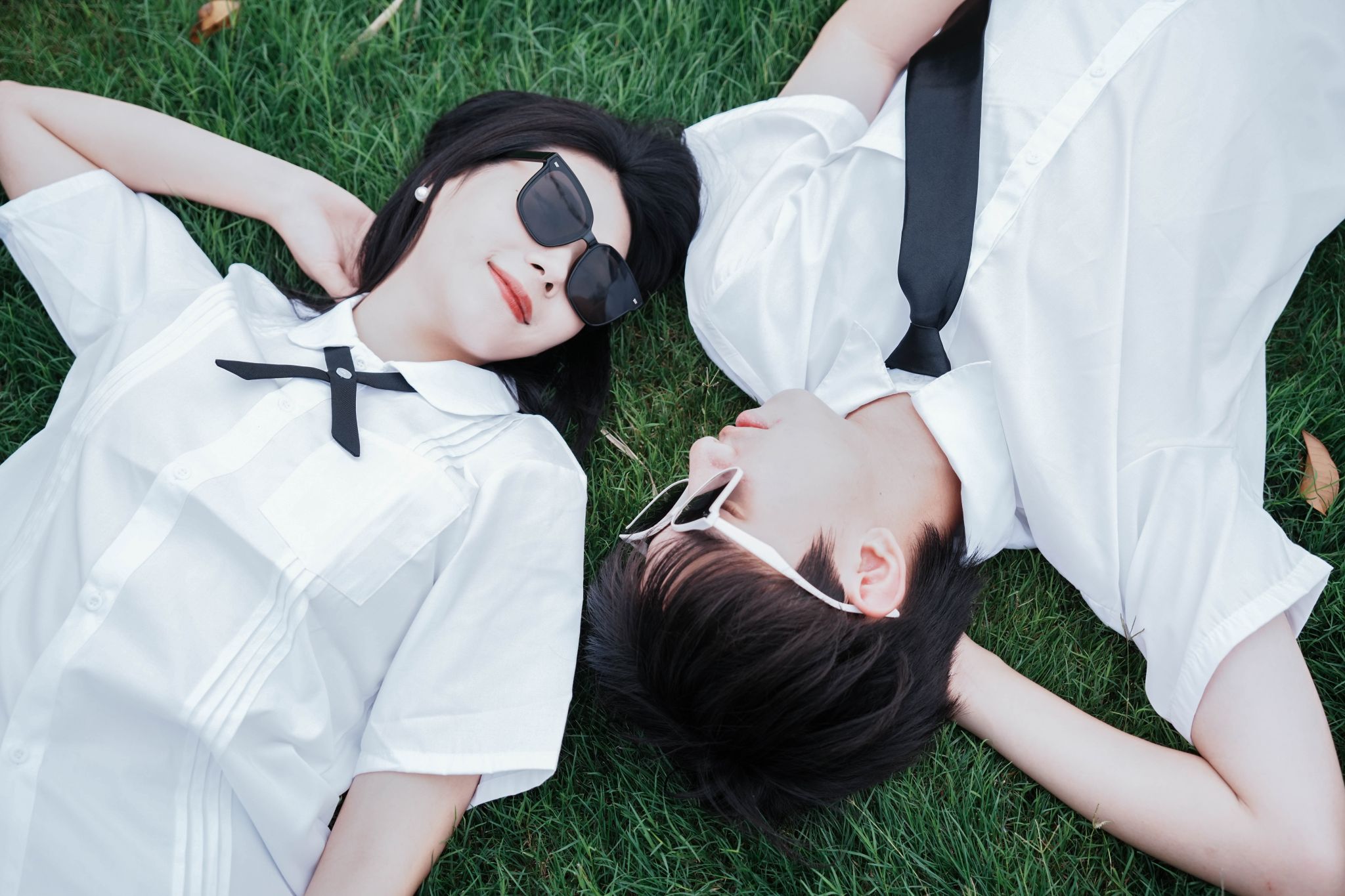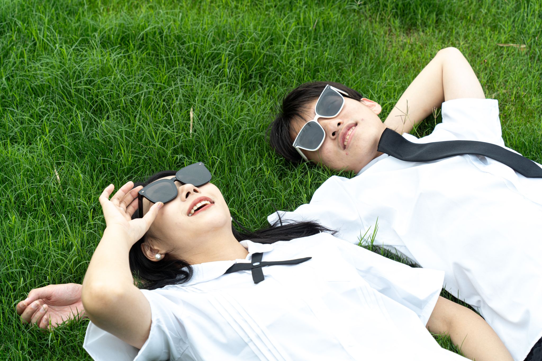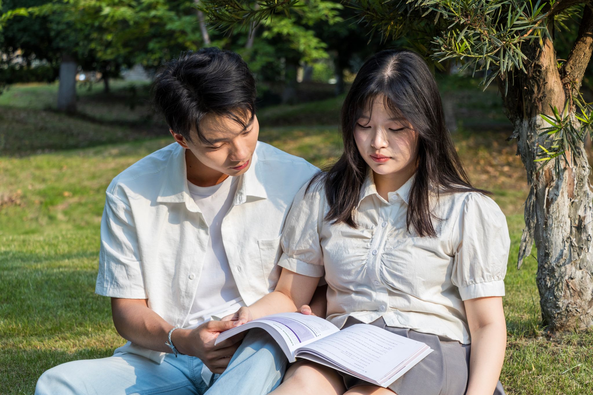 方澤國和他的對(duì)象在草坪上看書 唐治海攝