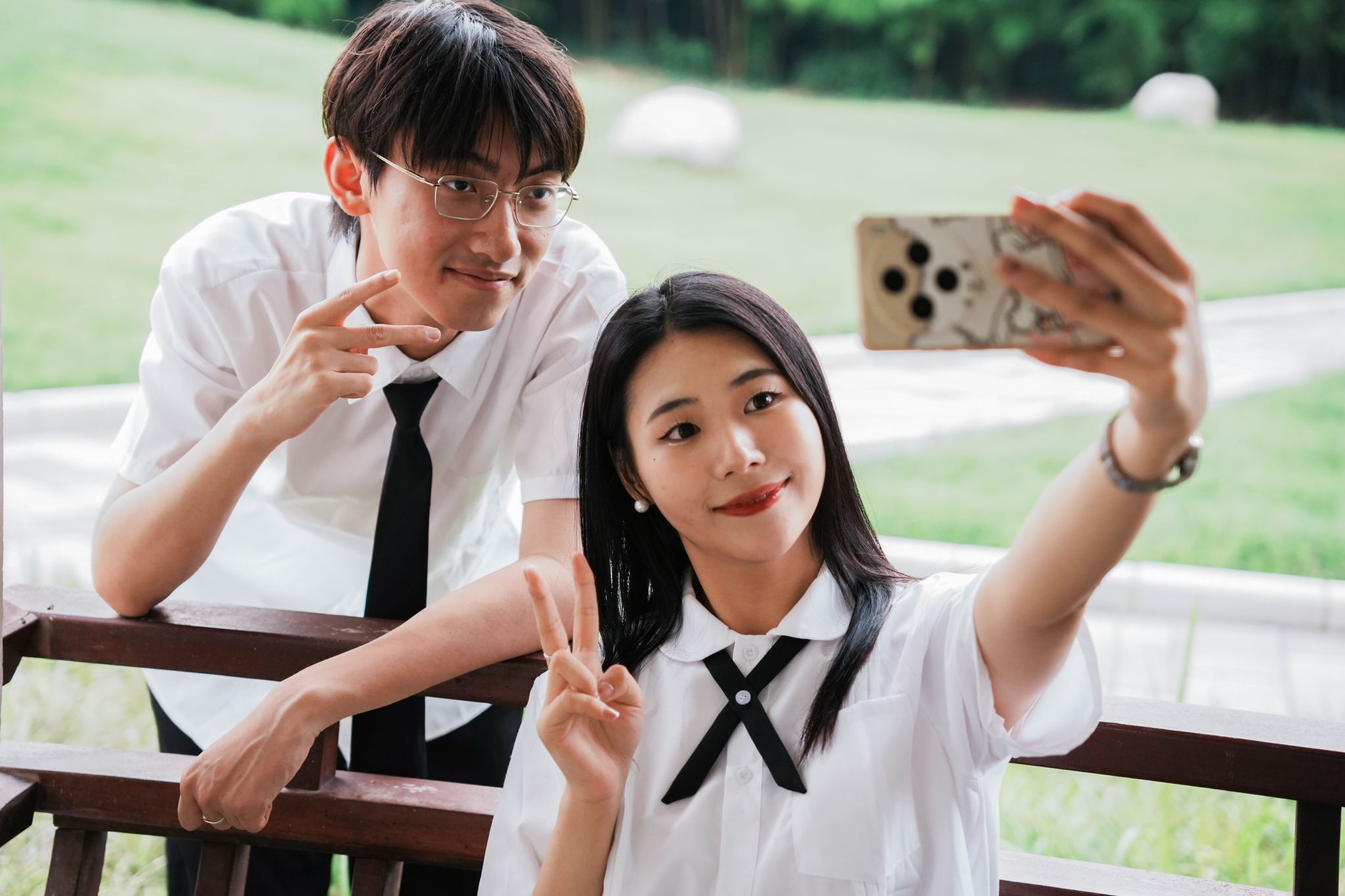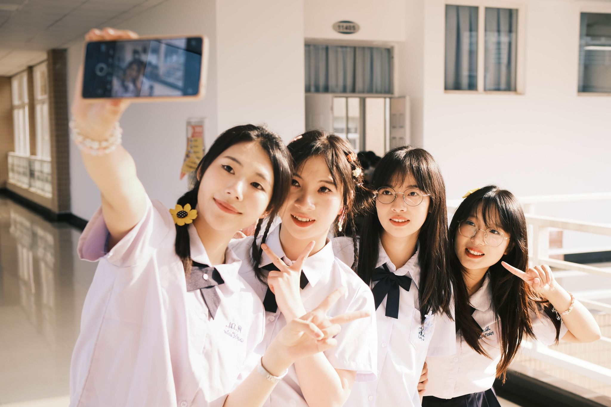 陳曉和他的大英班同學(xué)在自拍 唐治海攝