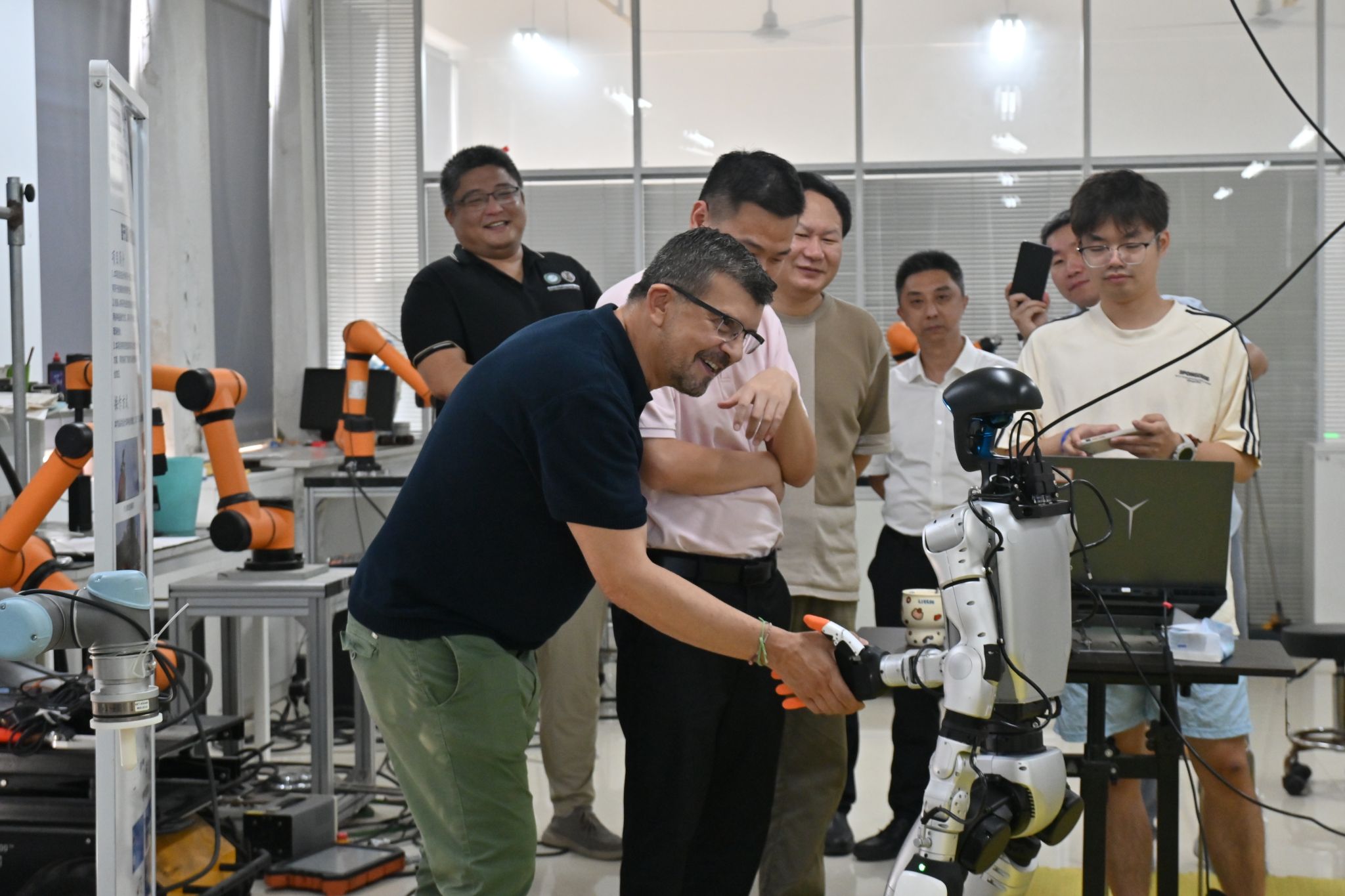 2025年9月15日下午2點至2點40分,我校馬德里康普頓斯學院機器人工程專業的全體學生前往工程實踐創新中心進行參觀學習。到達后,學生被分為三組,由中心的三位教師分別帶領,按照既定的三條不同路線進行參觀。參觀過程中,學生們深入了解了工程實踐創新中心的各類設施和實踐項目,包括機械加工設備、智能控制系統、工業機器人等,并聆聽了教師們關于設備操作、技術創新以及工程實踐應用的詳細講解。此次參觀不僅加深了學生們對專業知識的理解,也為他們在機器人工程領域的實踐能力培養奠定了基礎。(王銘浩)