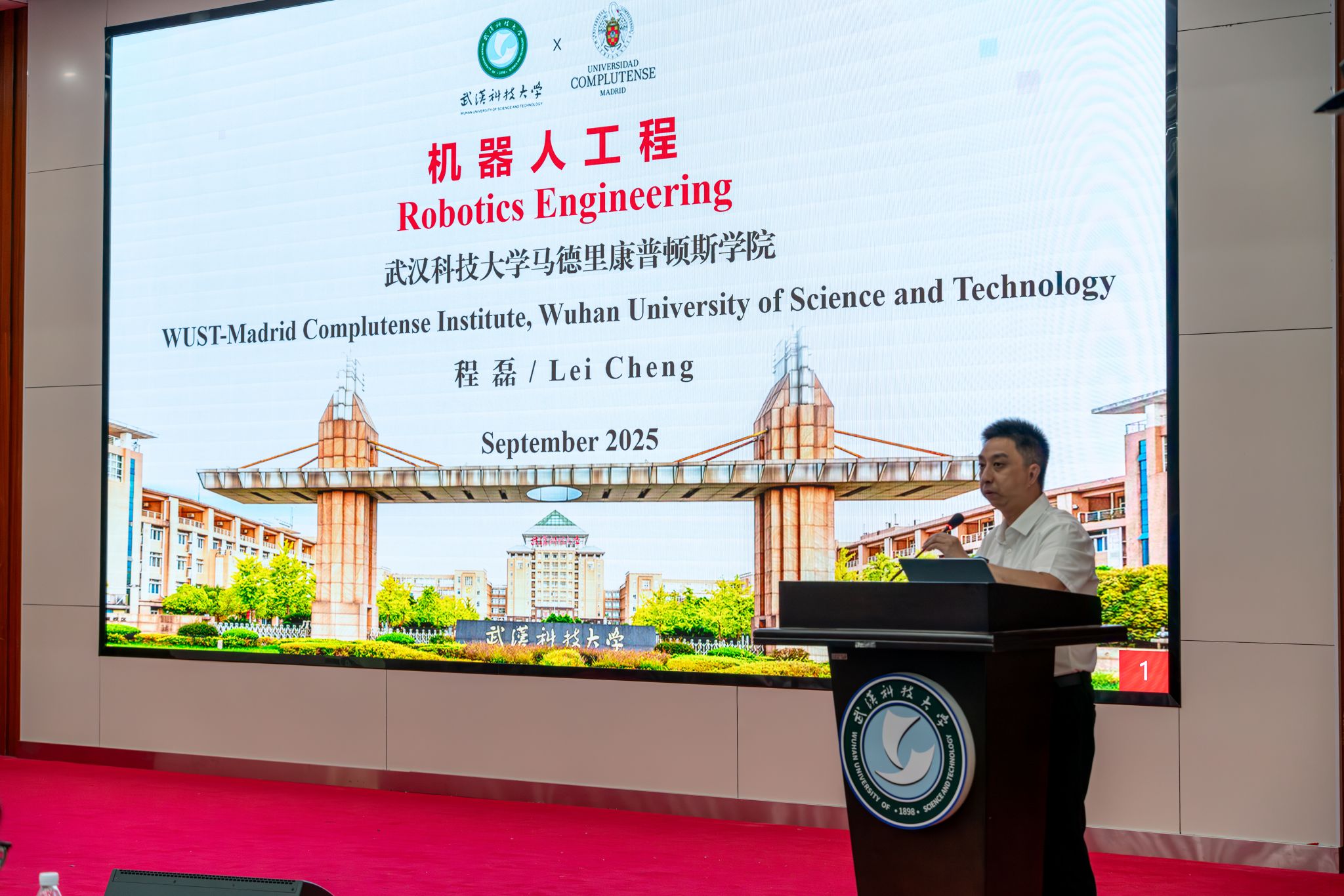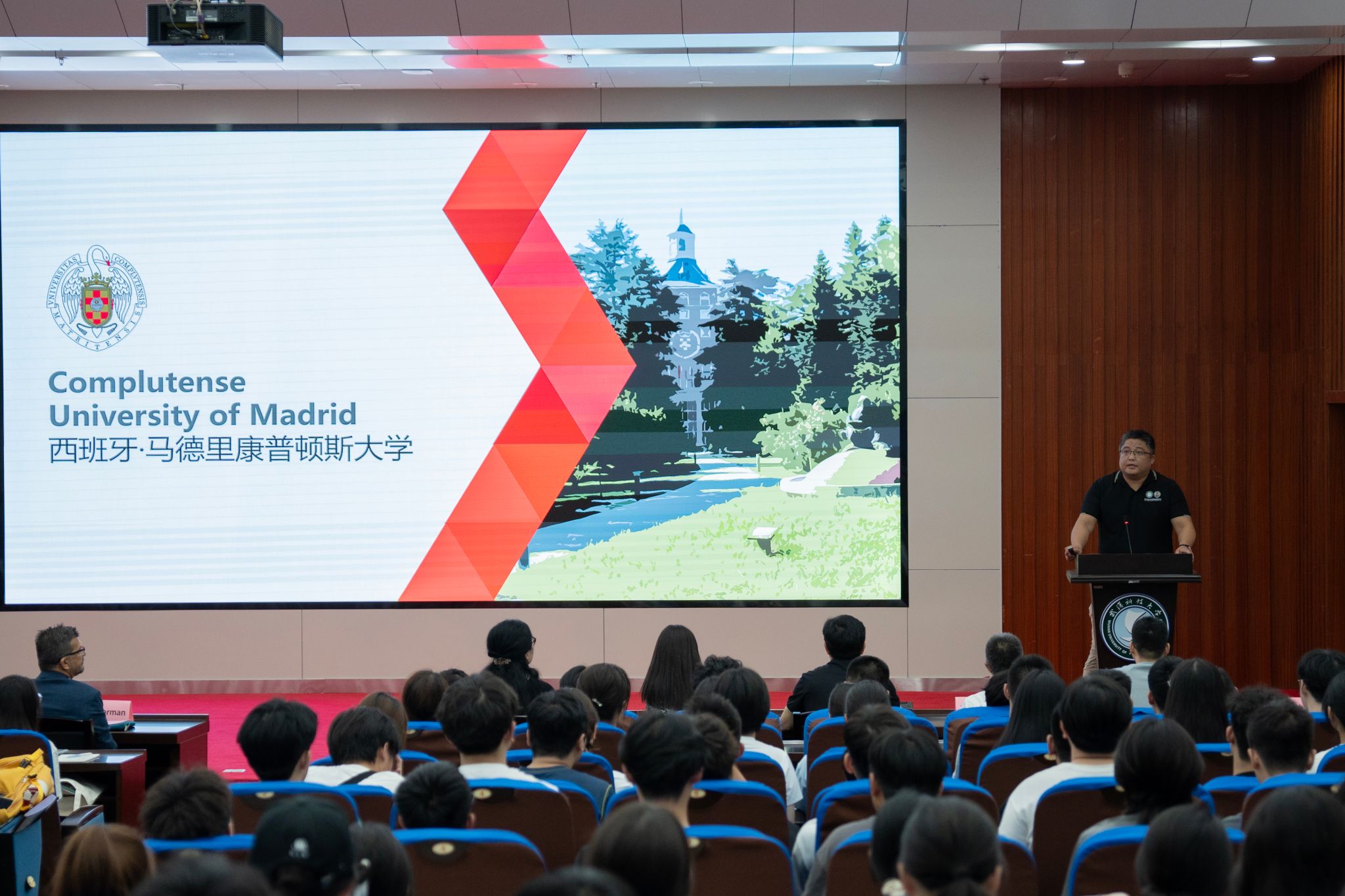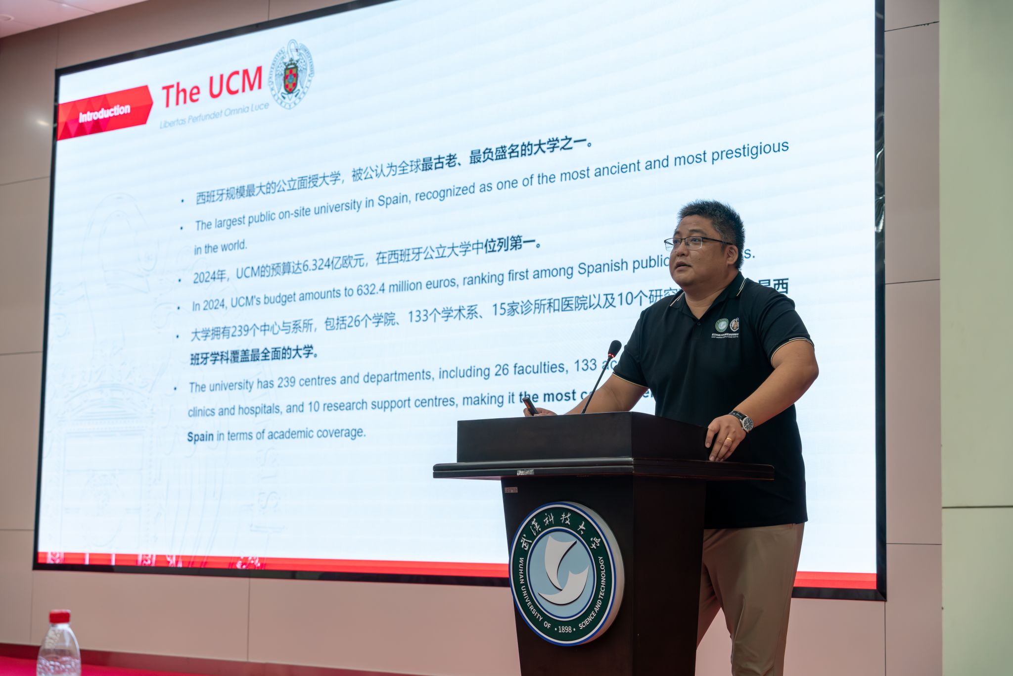 武漢科技大學馬德里康普頓斯學院外方副院長Alonso Tang先生介紹學校 王銘浩攝