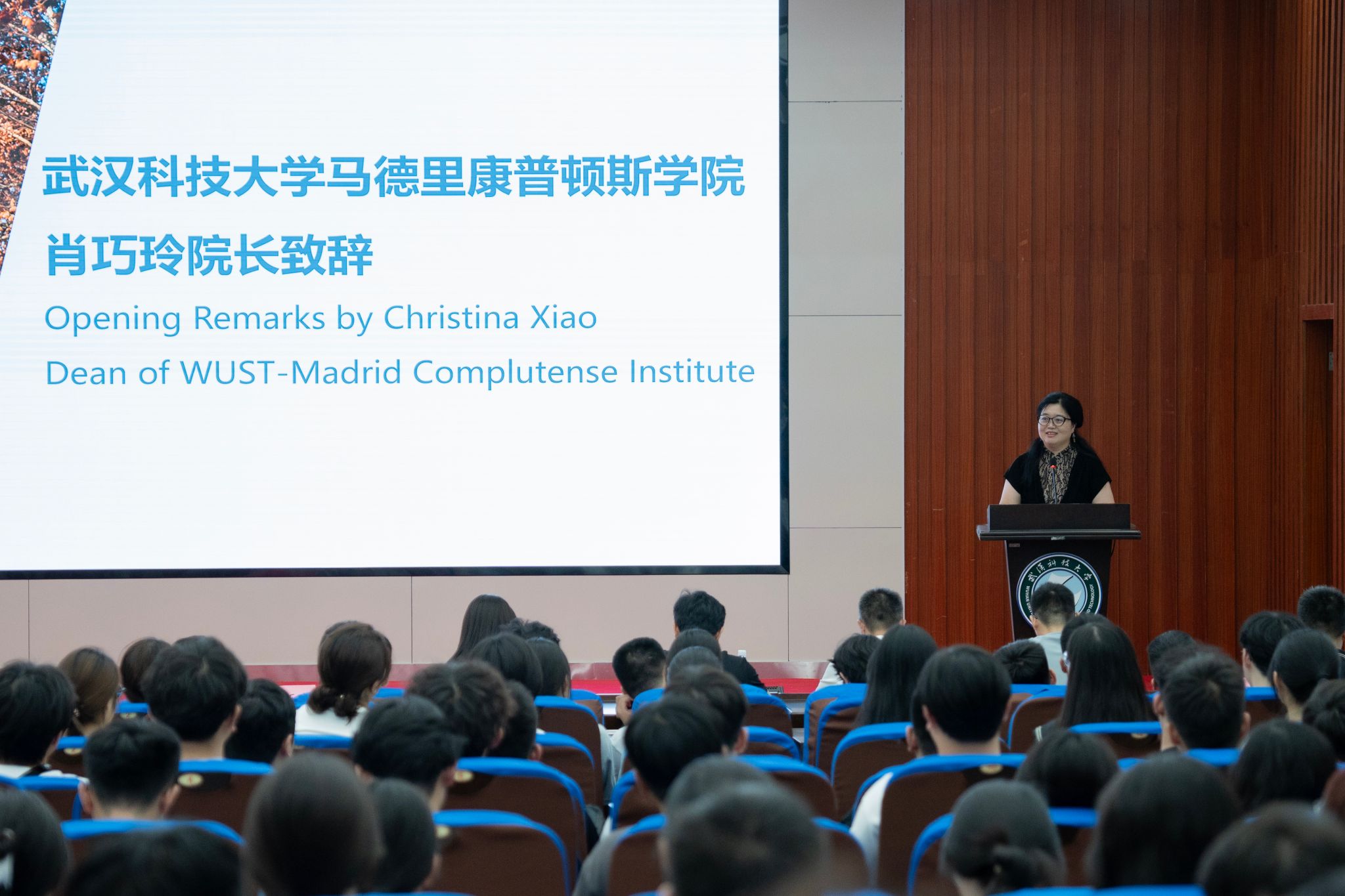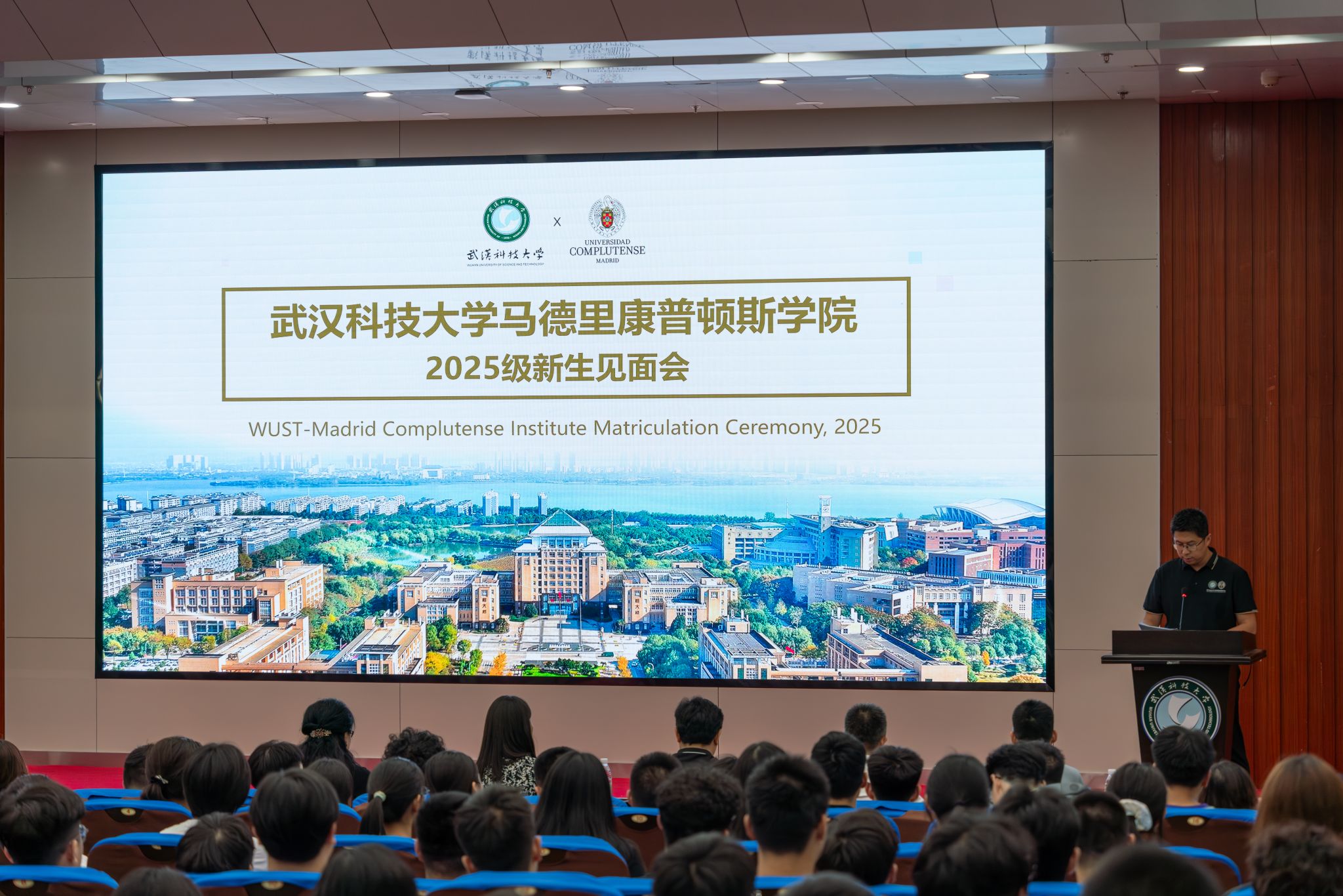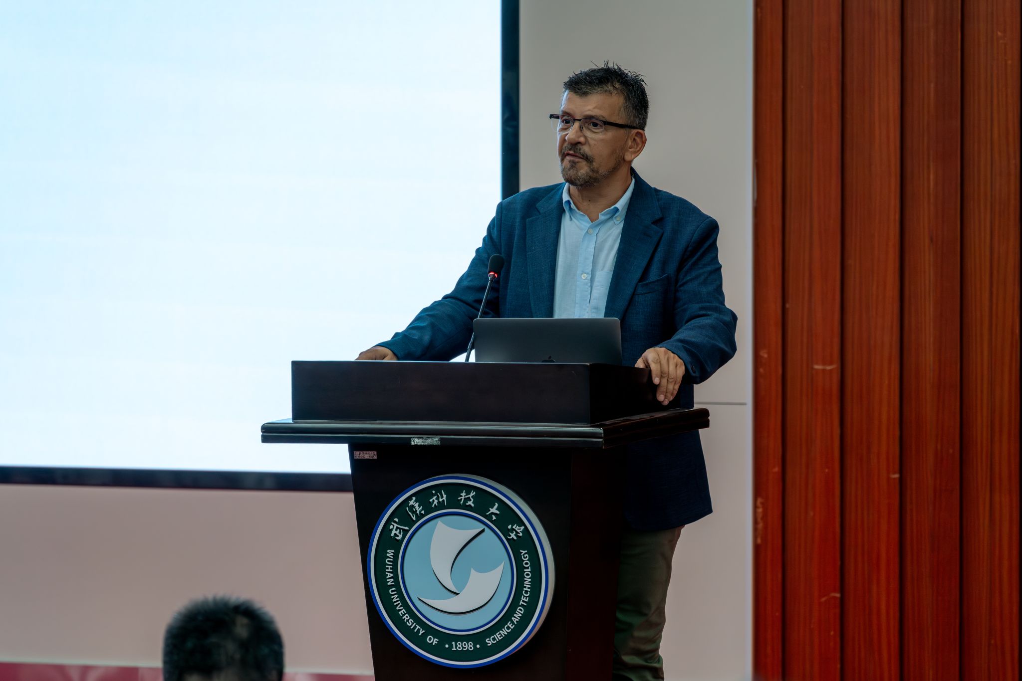 武漢科技大學馬德里康普頓斯學院外方副院長Alonso Tang先生介紹學校 王銘浩攝
