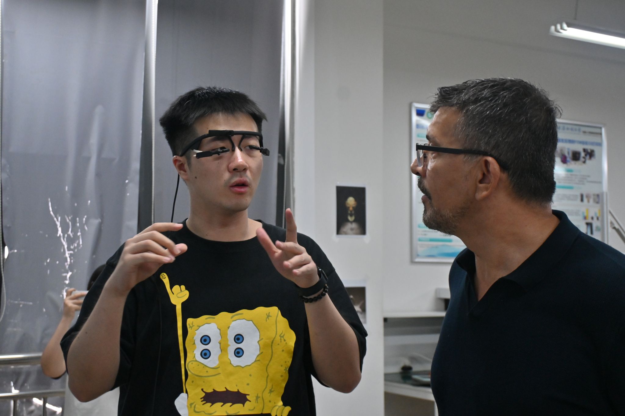 向馬德里專業老師介紹交互設備 唐思彤攝