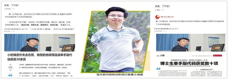 幼年“折翼”的他,20多年來,用一只左臂撥開命運的迷霧,在本碩博7年時間里,單手敲代碼,獲得三十多項獎勵和榮譽,描繪出自強自律的精彩人生。