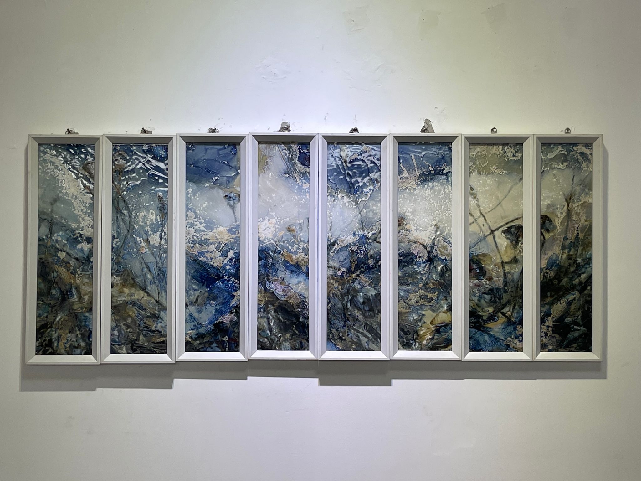 管家慶的作品以瓷板為紙、釉料為墨,綜合運用釉料潑灑、點涂、塊抹等手法,實現包括無光釉、裂紋釉、結晶釉等在內的多達幾十種不同色釉的重疊并置,最終經由火的淬煉,呈現出高溫顏色釉的獨特藝術特質。