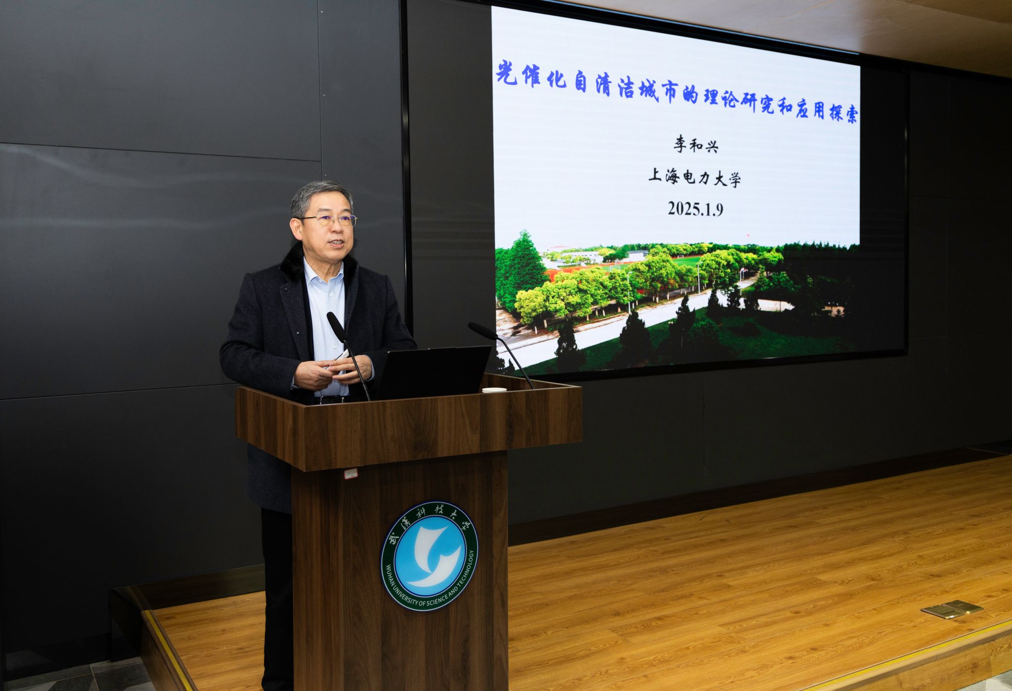 武科大網(wǎng)訊 1月9日上午,化學與化工學院在青山圖書館一樓112路演廳舉辦了第十六期“陶著講堂”系統(tǒng)學術(shù)報告會,國家杰青、原上海電力大學校長李和興教授應邀來校作學術(shù)交流,為學院師生帶來了一場題為“光催化自清潔城市的理論研究及應用”的學術(shù)報告。報告會由化學與化工學院院長鄭安民主持,炭材料中心李軒科教授團隊全體教師,學院其他團隊負責人、青年骨干教師及研究生80余人參加了此次學術(shù)交流活動。