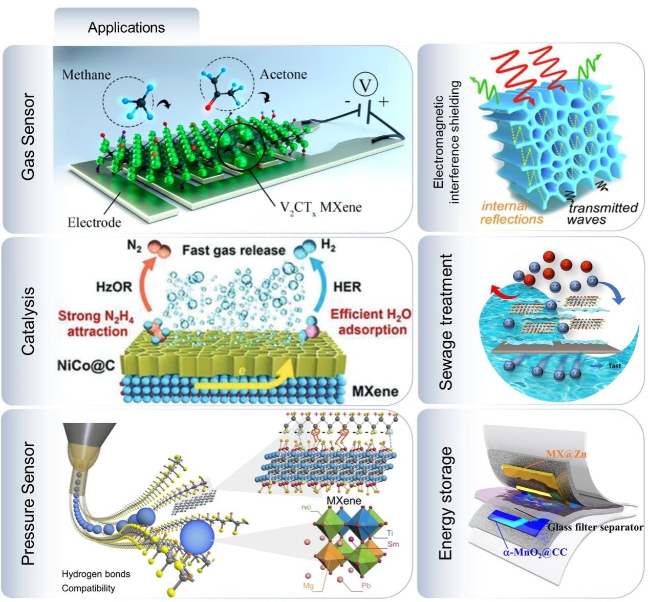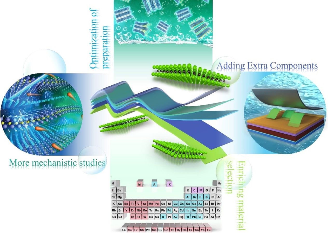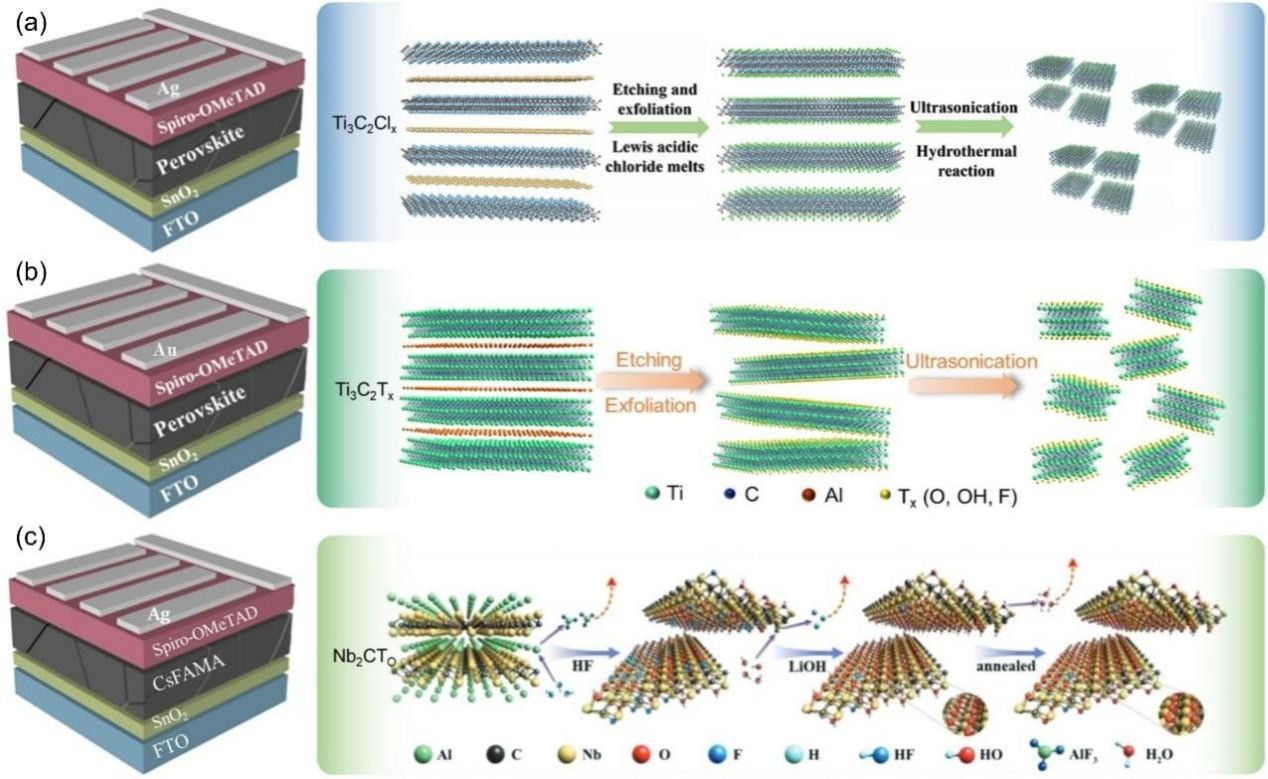 鈣鈦礦太陽能電池因其高效率(最高達26.1%)和低成本成為光伏領(lǐng)域的研究熱點,但其穩(wěn)定性與鉛毒性問題阻礙了商業(yè)化進程。MXene作為一種二維過渡金屬碳氮化物,憑借高導(dǎo)電性、親水性、可調(diào)表面官能團及低溫加工優(yōu)勢,被廣泛用于PSC的空穴傳輸層(HTL)、電子傳輸層(ETL)、鈣鈦礦活性層及電極中。王玉華課題組總結(jié)了PSC和MXene的關(guān)系和發(fā)展,探討了MXene在PSC各功能層中的集成策略。