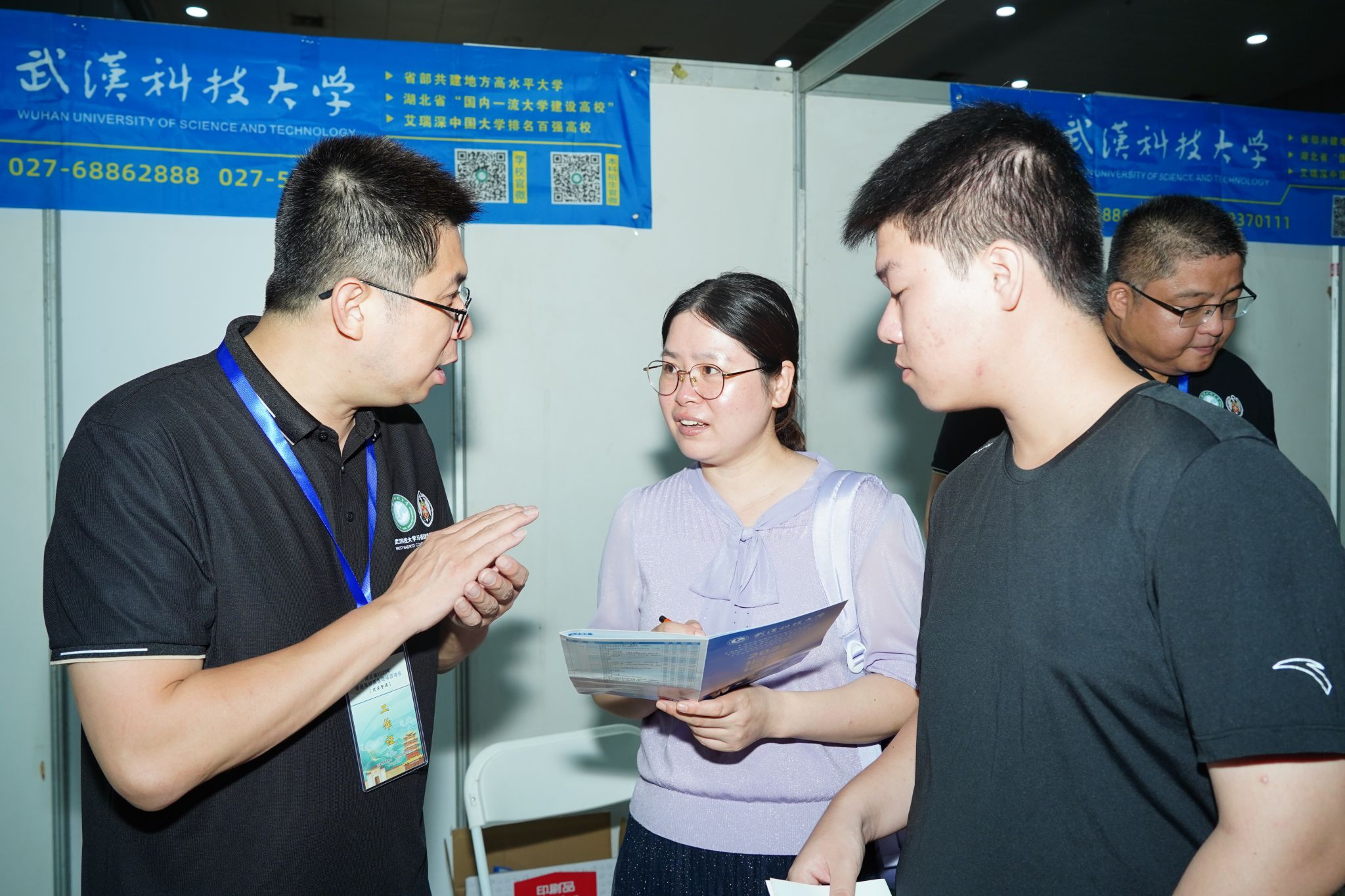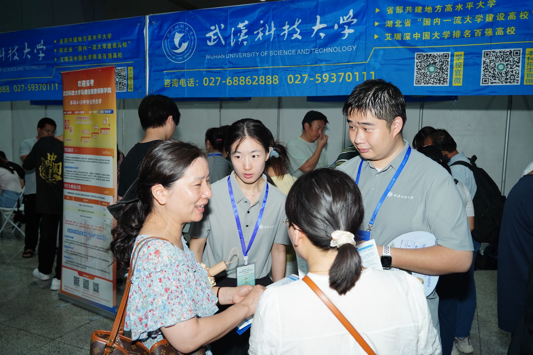 武科大網(wǎng)訊(通訊員徐湘穎 攝影孫正恒)6月28日,我校在武漢國際會(huì)展中心舉辦線下招生咨詢會(huì),吸引數(shù)千名高考生及家長到場咨詢。其中,新成立的中外合辦學(xué)院與雙學(xué)士學(xué)位項(xiàng)目成為家長關(guān)注的焦點(diǎn)。